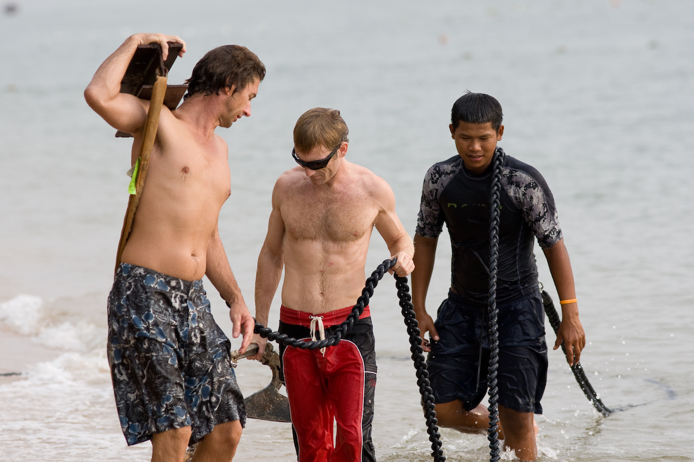 First task is to attach one end of the bungee to something secure, an anchor would seem like a good idea.