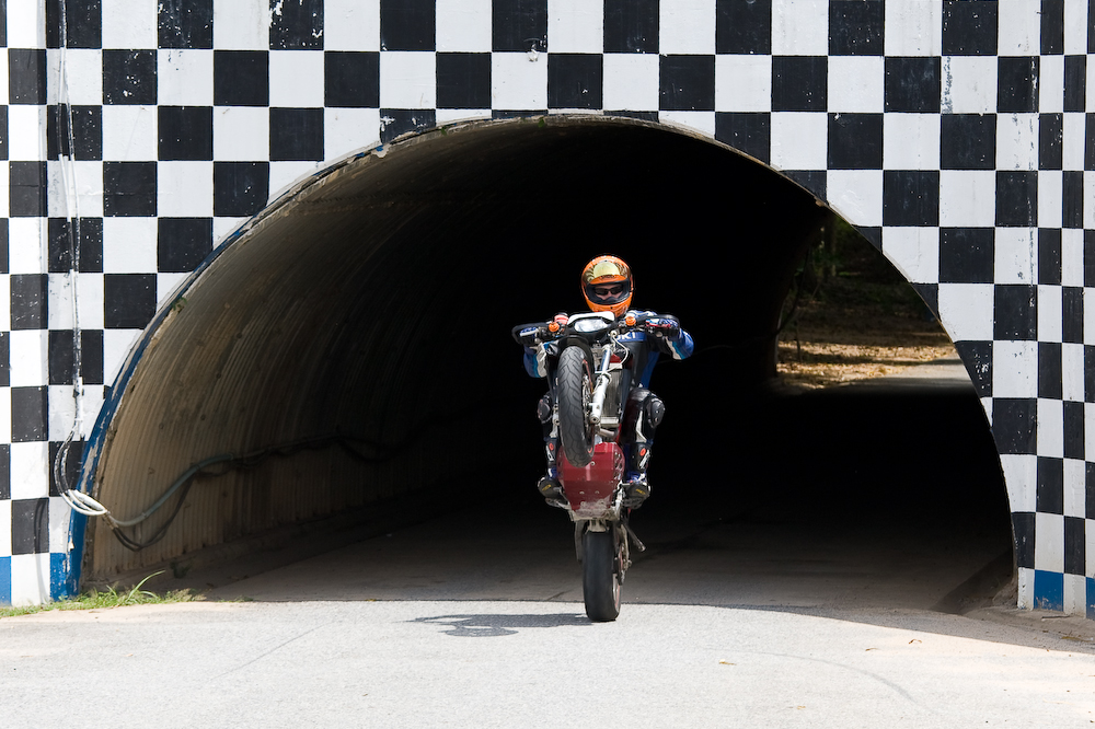 Then he decided it would be fun to do a wheelie inside the tunnel under the track, made a nicer noise and would create a more comprehensive accident if he fell off: