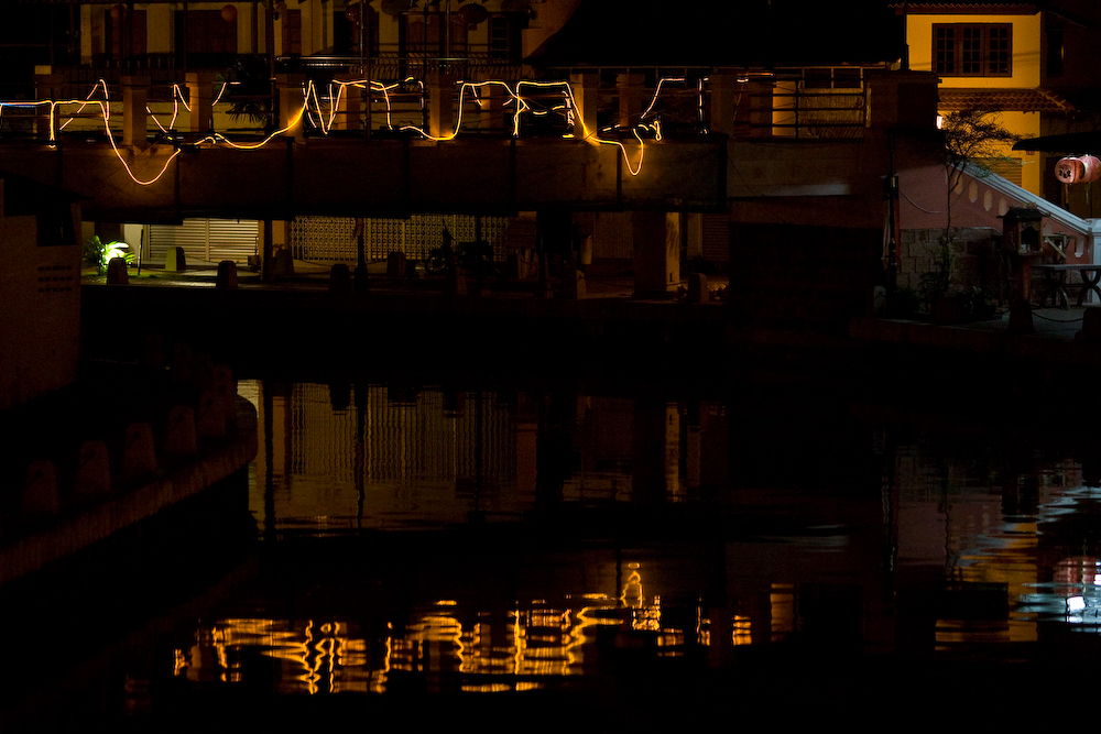 Fun to photograph by day, Malacca is even better by night, with every building carefully lit, with red being the dominant colour.