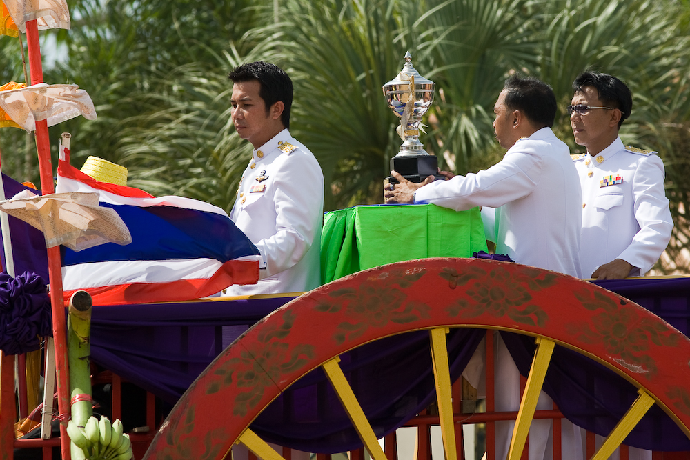 The event starts with the trophy for the winner being wheeled in on a large ox cart, complete with dignitaries.