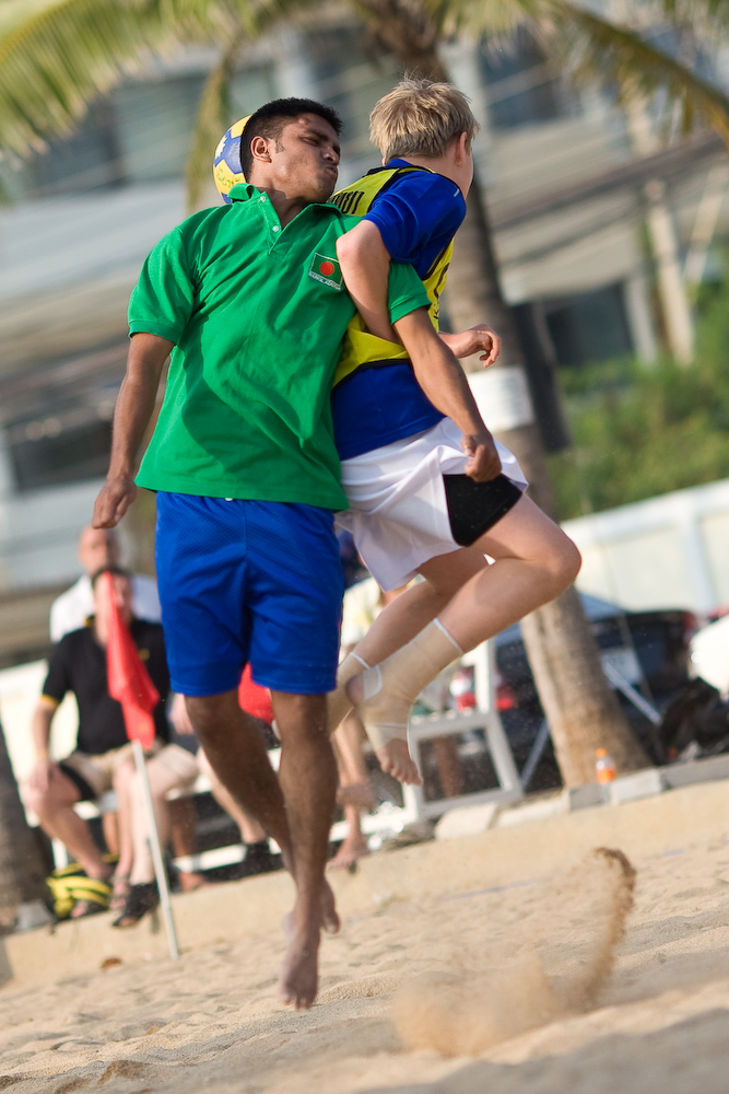 But, there is a beach tournament underway on Jomtien beach, so I had to go and point a camera at it. Players were all ages and sizes. The German goalie was particularly bulky, and the Norwegian’s star player was half the size of everyone else (and a quarter of the size of the German goalie).