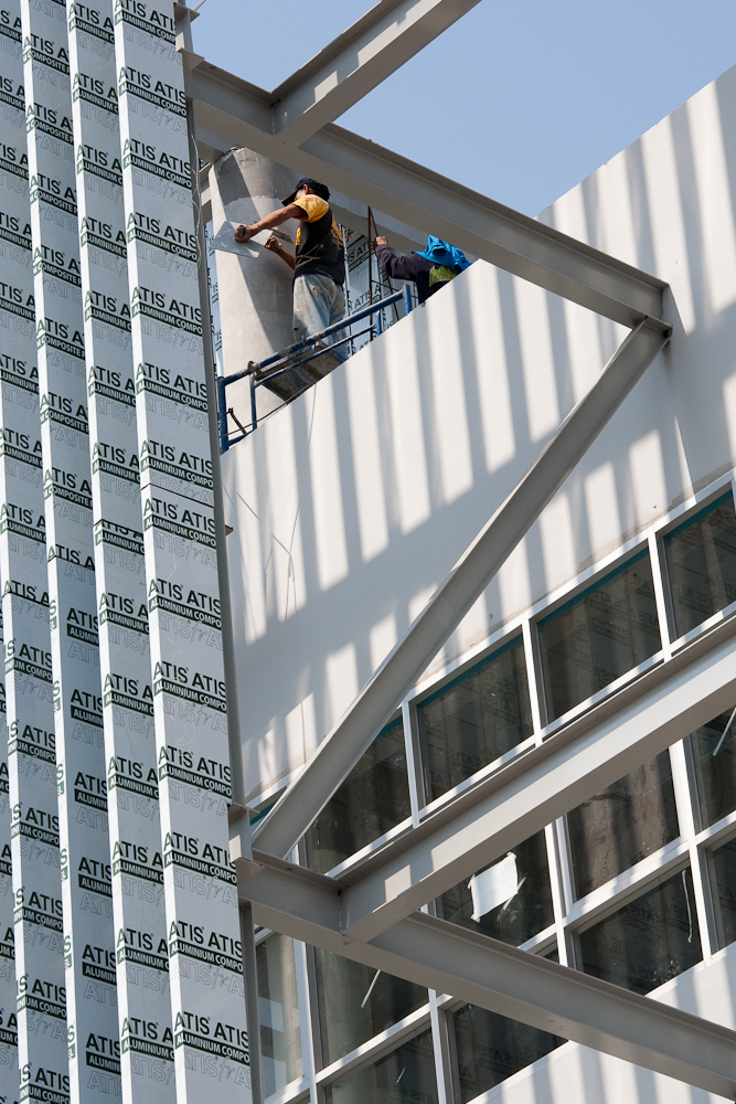 Passed a building under construction yesterday, had to go back and point a camera at it today. I really like the lines and shapes, I wonder if it will look so interesting once it is finished.