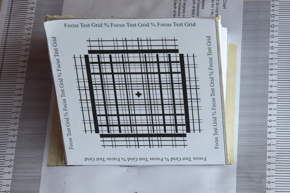 To carry out the calibration, you need something to focus on, and an indicator which shows the amount of front or back focus. I made such a device myself out of cardboard, paper, and a design from the wide, wide world of web. If I was asked to summarise the overall quality, accuracy and robustness of the device, I would say it was rubbish.