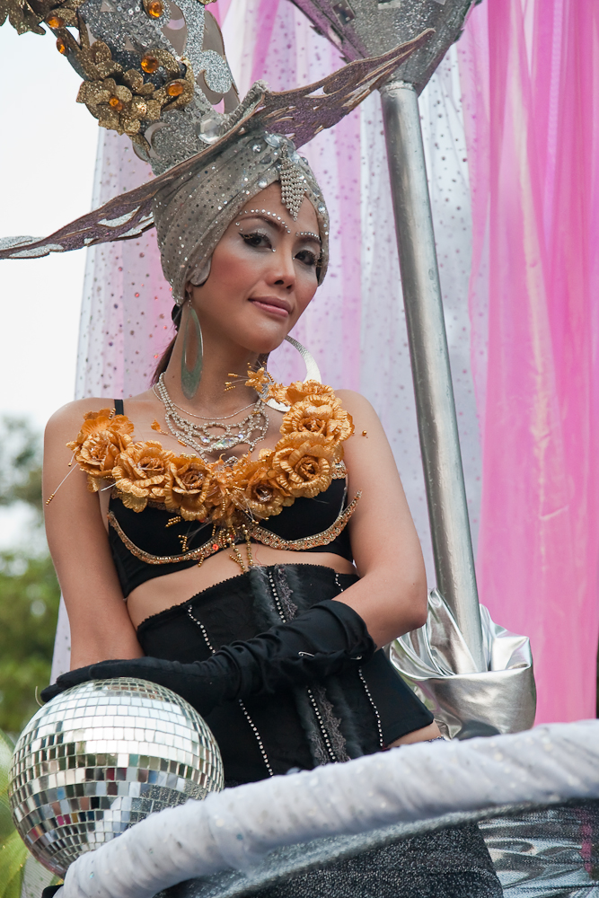 To coincide with the opening of the new Central mall, Pattaya had its own Mardi Gras parade yesterday. As Mardi Gras means “fat Tuesday”, it was only appropriate that it be held on a Friday. The organisers had announced that the themes would be Thai Contemporary Arts; Modern Beach Lifestyle and Under the Sea Celebration. In the event the theme just seemed to be bar girls (and boys) on the back of trucks, but nothing wrong with that.
