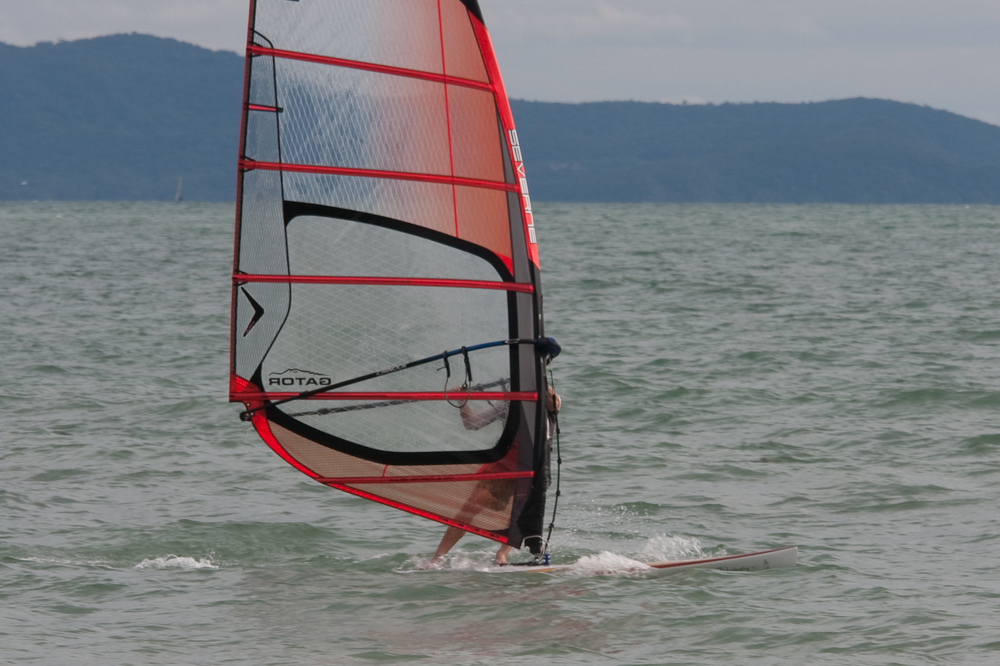 My board of choice was a Serenity, not the easiest beast to sail at more than 4 metres in length, not very wide, and a tendency to have do what it pleases, rather than what you want it to do. But it does whizz along even in light winds, and with a bit of a hand from Craig to get the board and rig into the water, I was up and away.