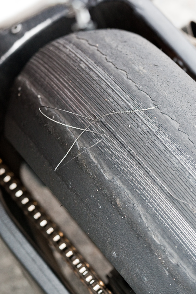 Jimmy’s monthly cunning stunt was less flamboyant than usual. He had a dying rear tyre which he killed off by smoking it up and down the pit lane; until it fell to pieces and started to remove bits of bodywork,