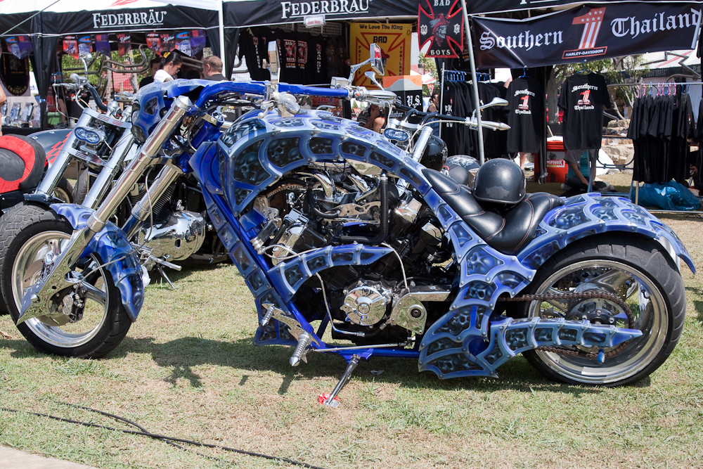 This annual bike gathering attracts thousands of bikers from around Thailand and overseas. Qualifications for attendance include a leather waistcoat with badges, some form of headband, extensive facial hair and anatomical evidence of excessive beer consumption. This guy qualifies: