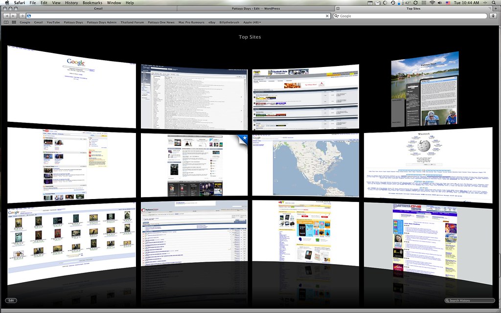First there is the “top sites” view which shows you your most regularly visited sites on a single screen, from which you can visit a selected page. I am not sure how useful this is, but it looks cool; which is important.