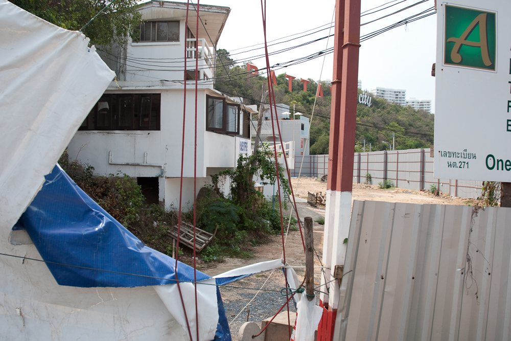 So it’s time to see how much progress they have made on construction. Here’s a view, taken today, through the charmingly rustic entrance tarpaulin to the construction site: