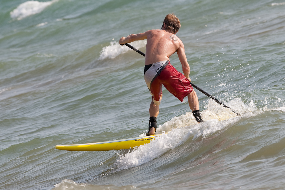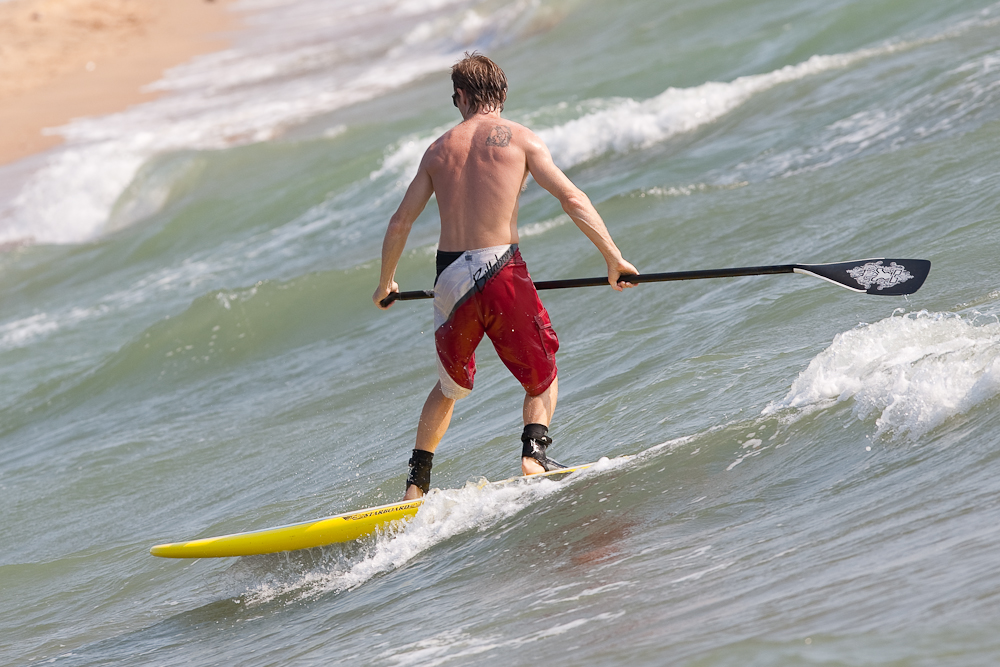 Good wind but not up to sailing, so point the camera at Craig on his new yellow SUP. He refuses or is unable to put his right foot forwards, so I end up with too many photos of his back.