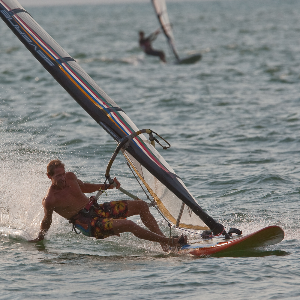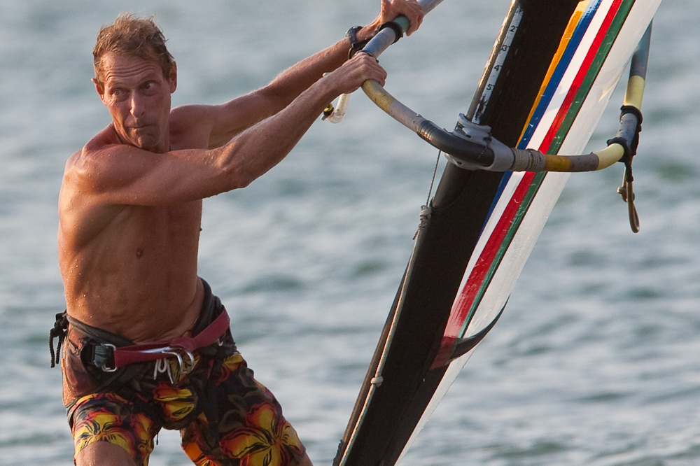Nowadays Pierre lives in Thailand with less than the normal number of teeth and no money. During his waking hours he lives at the windsurfing club, waiting for the wind. His equipment is a scruffy collection of hand-downs and stuff he found in ditches. He is endlessly repairing, or wielding paint brushes to add some colour to his motley hoard of windsurfing gear. He is always cheerful, even though his sailing outings usually result in the collapse of some part of his antique equipment; thus requiring more patching and paint brushing.
