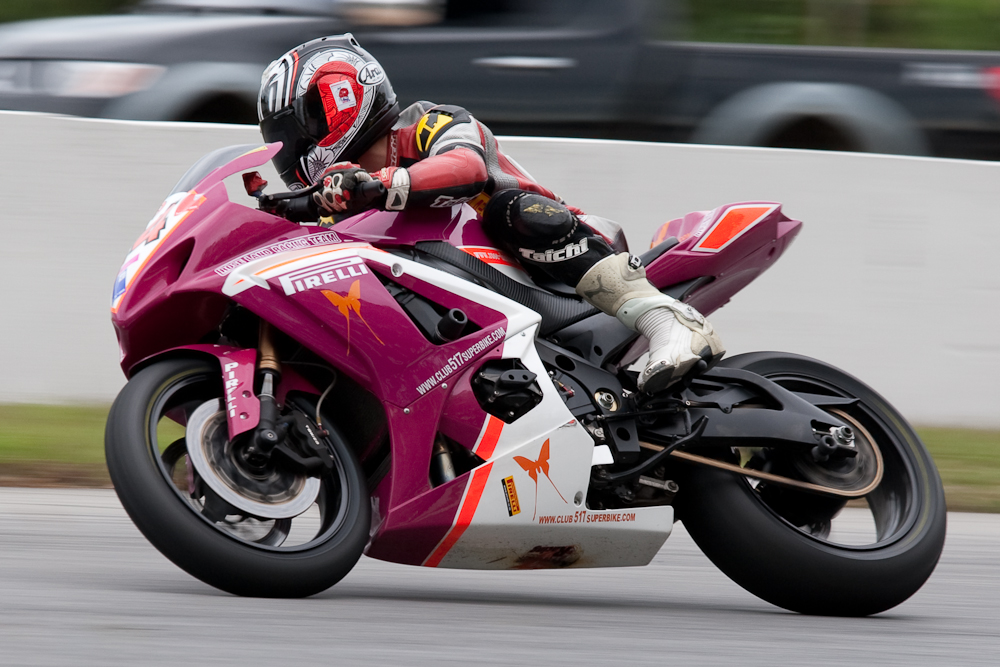 I managed to get the panning just right on the next one at 1/125th. The central frame and the riders boots are pin sharp, but the rest of the bodywork and the rider are bouncing around in the very high speed corner. It’s amazing how little things like this can make me happy…