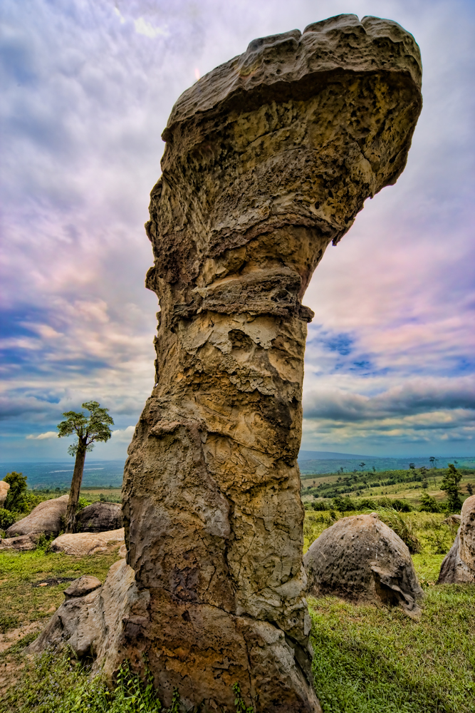 This is a photo of a somewhat phallic rock in Phu Lan Ka national park. Interesting shape, but the shot is a little insipid. No doubt some time in Photoshop by someone who can actually remember 25 hours of training would do the trick, but one click on " crisp", or a click on “spicify” produces some interesting, if not particularly life-like results.