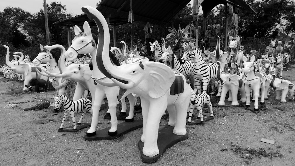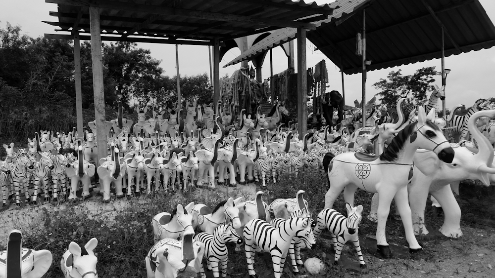 It may look like a rather poorly presented plaster zoo animal shop by the side of the road, but closer inspection will reveal shrine-like components.
