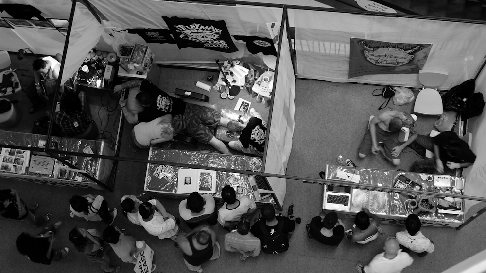 The high proportion of inhabitants of this festering city who are adorned with body art means that we must have an annual tattoo festival. Last year’s was a lavish, outdoor affair which was fun to photograph. This year there is a smaller, more sanitised, affair in the Central Mall.