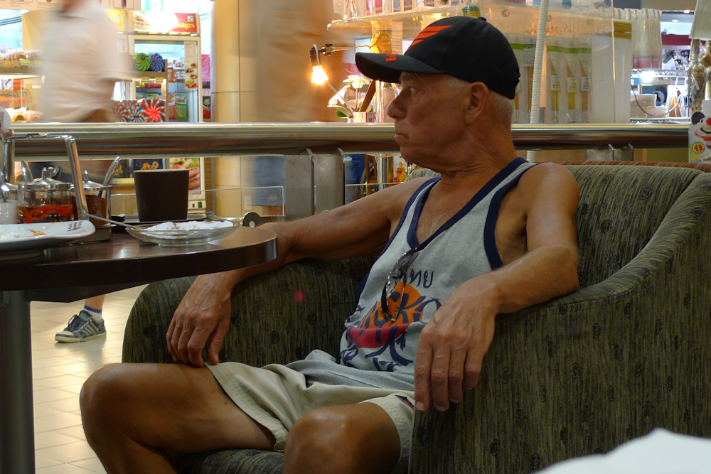 Just the sort of guy they are trying not to attract to Pattaya; but they come anyway. This one was alternatively slurping coffee and trying to negotiate a price for favours with the rather faded lady who, it seemed rather reluctantly, was sat opposite him. Quite put me off my lunch.
