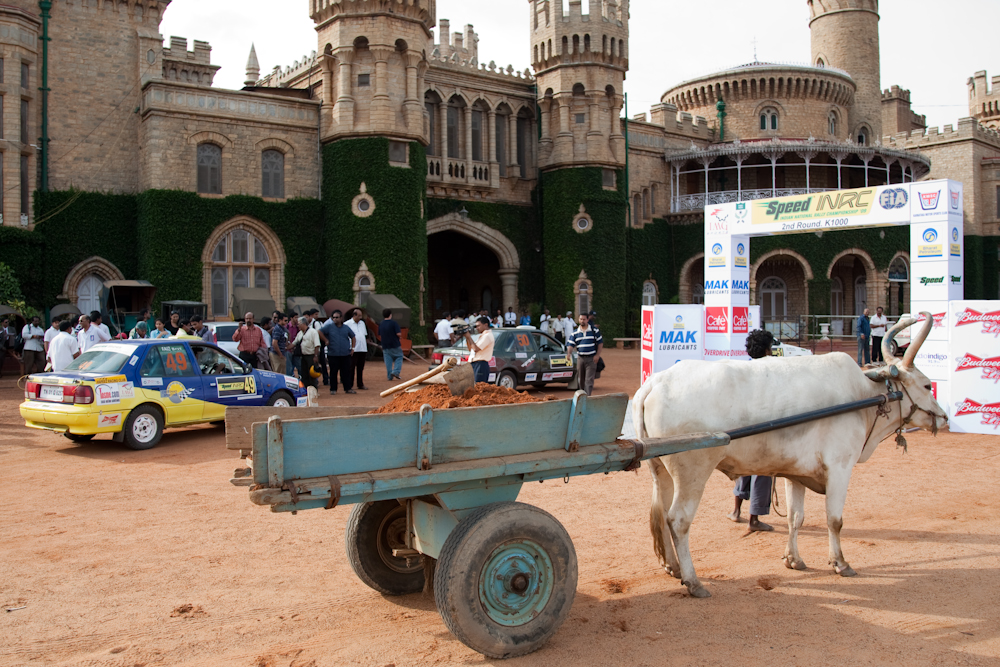 Second day in Bangalore and it is the official start of the rally. The cars have to be checked out by the scrutineers before the start, so I head for the scrutineering bay. I am wearing my media pass and so walk past the two guards at the entrance.