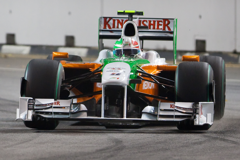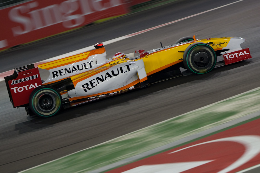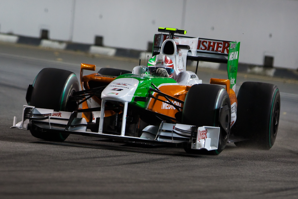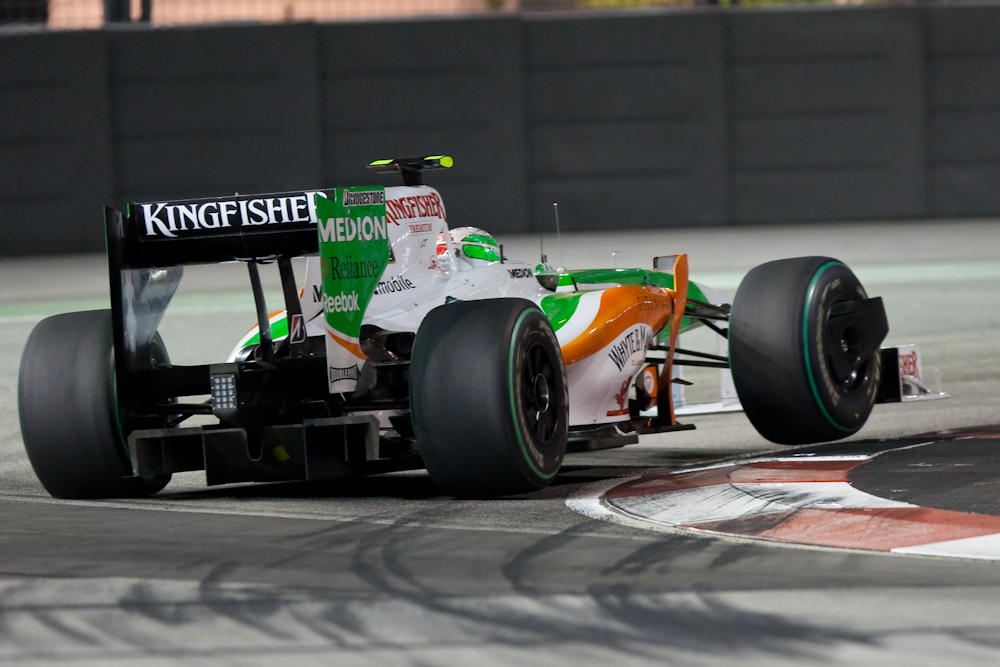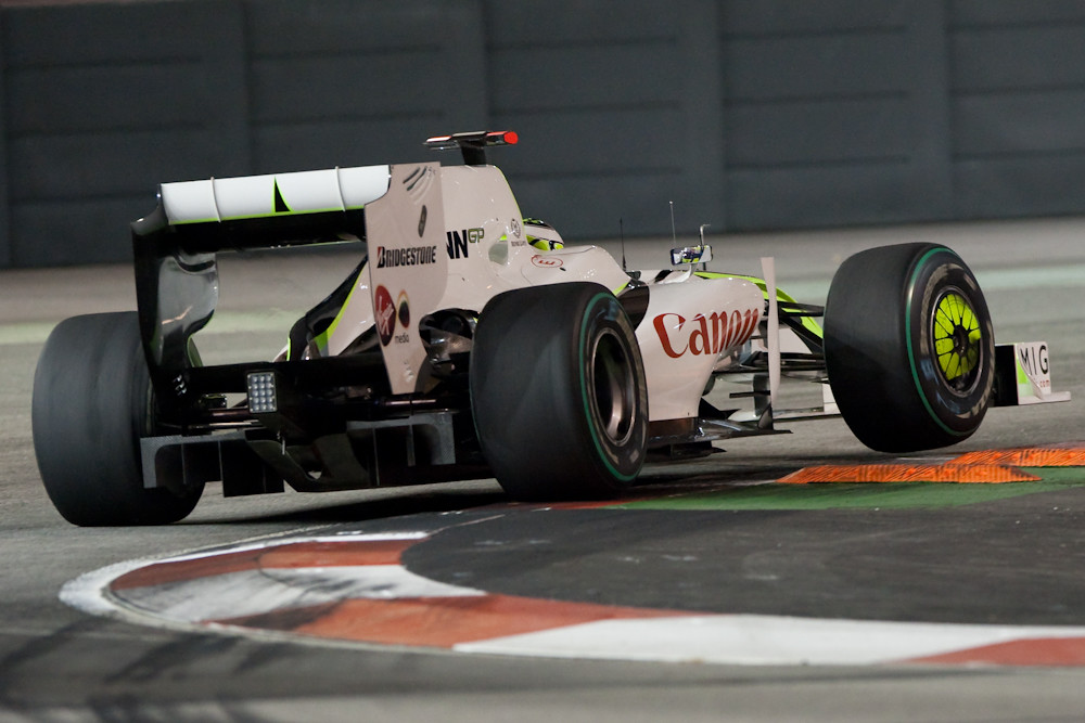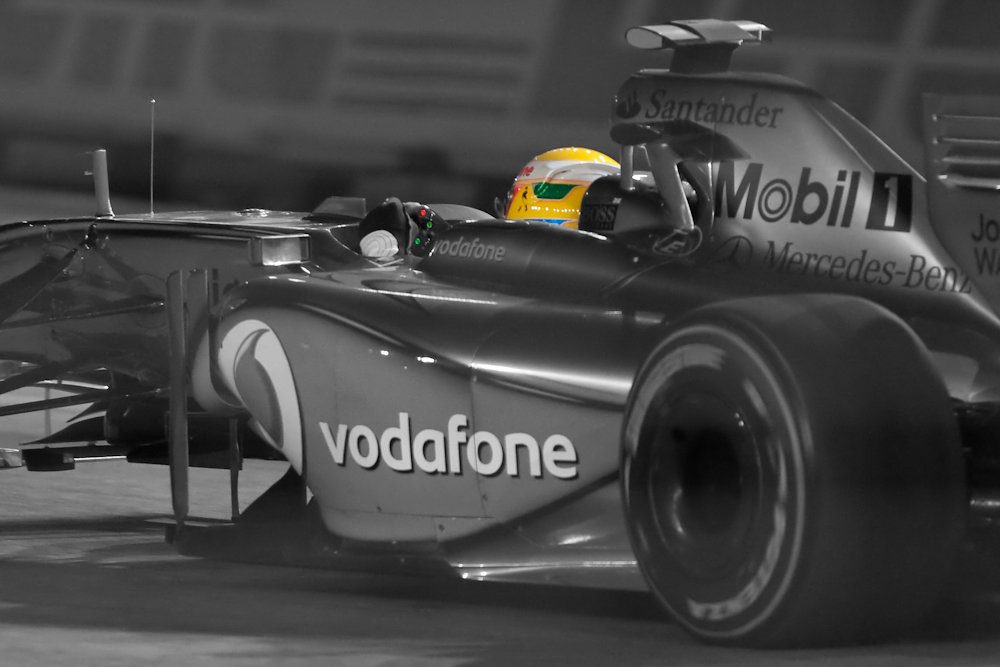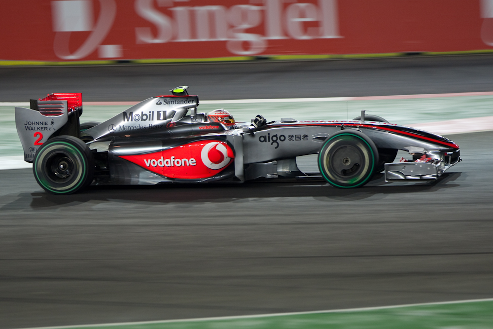 There are two types of photographers at a Formula 1 race. There are the official F1 photographers who wear fancy jackets and are allowed to shoot from almost anywhere; they are also known as “lucky bastards”. Then there are the rest of us who are confined to one location and can’t see very much, let alone photograph it. This is particularly true at a street circuit like Singapore where you are very close to the cars, but then have to be protected from airborne cars and assorted components by a wire fence which is rather hard to shoot through.