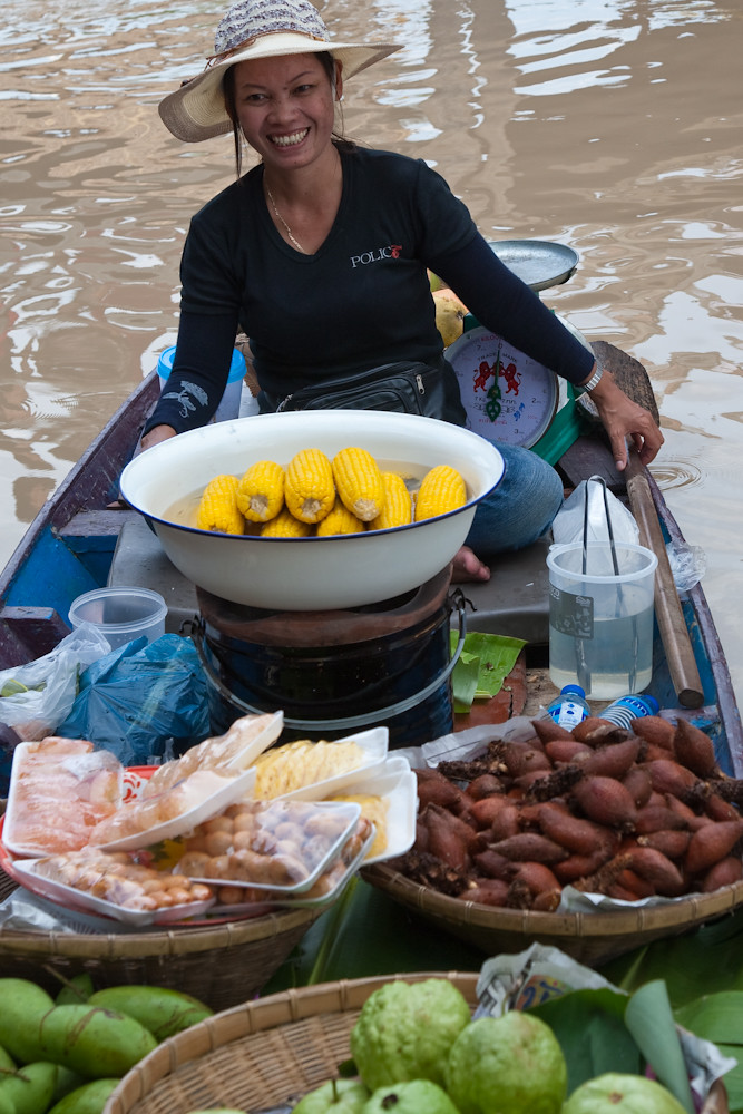 Anyway, we had to buy it first, and not just any wind chime. It had to have four hanging down bits and not be silver; which is the exact opposite of the specifications of most wind chimes on the market. So we went to the Floating Market in search of wind chime elusiveness. We took cameras, because she who must be obeyed needed some shots for her company website.