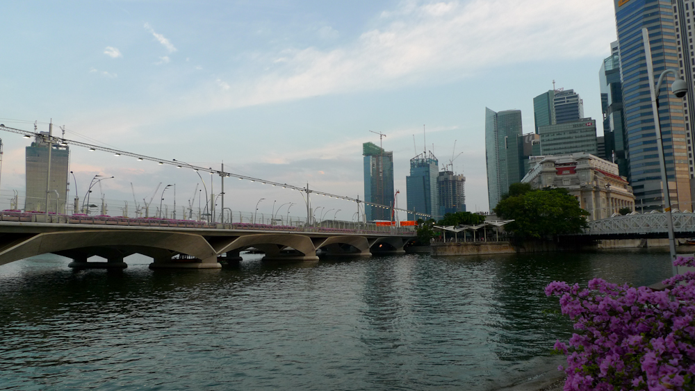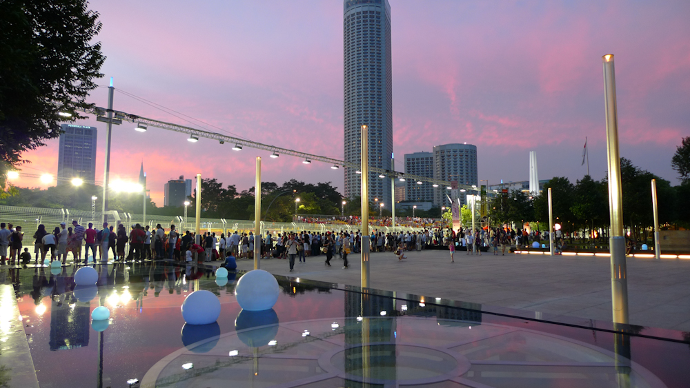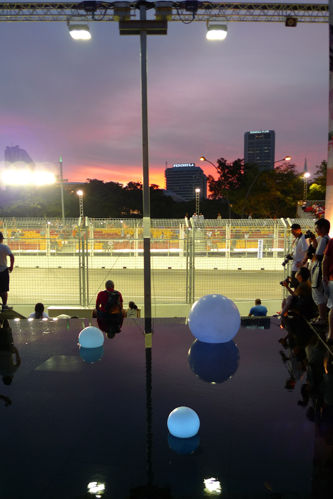 The instructions told us that we should get to the circuit by taking the MRT to a choice of stations and then getting a shuttle bus. A shuttle bus…? Those mystical devices that rarely arrive, and if they do they leave you stranded in strange places? Well of course not, this is Singapore. Out of the MRT, walk onto a bus, and five minutes later you are at the track. When you leave, same thing in reverse. On Sunday night after the race we left our grandstand along with a zillion other people, walked straight onto a bus, straight into an MRT train, and in only twenty minutes from standing up from our seats, we were making friends with this in the centre of town.