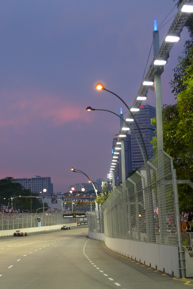 But now Singapore. I know there are other street circuits, but you have to admire the courage required to build a racetrack in the heart of a hotel/shopping mall district, and do it in a way such that everything around the track continues to function. And it all looks so damn good. The track itself is, out of necessity, a snaking cake of fencing and clever stuff for cars to bounce off when it all goes wrong. But around the track there are lanterns and flowers and decorations that will presumably have already been ripped down; but they give the place an atmosphere of permanence and charm; with the Singapore skyline as a backdrop.