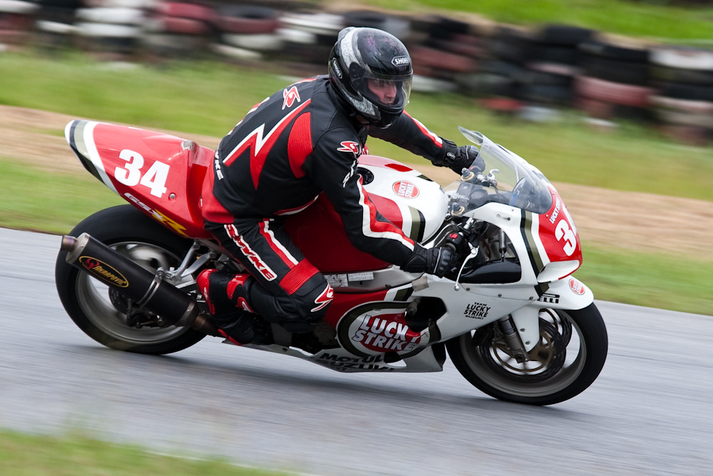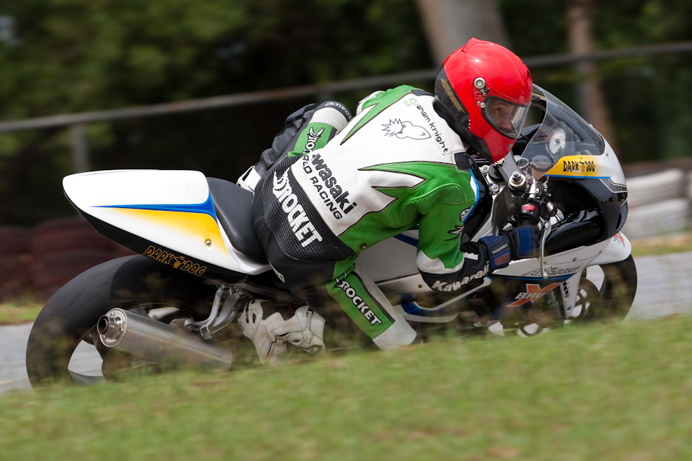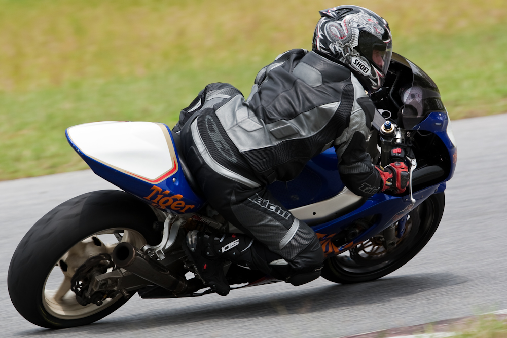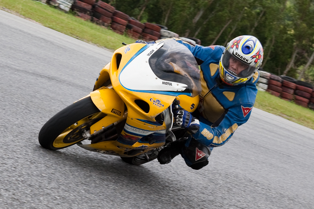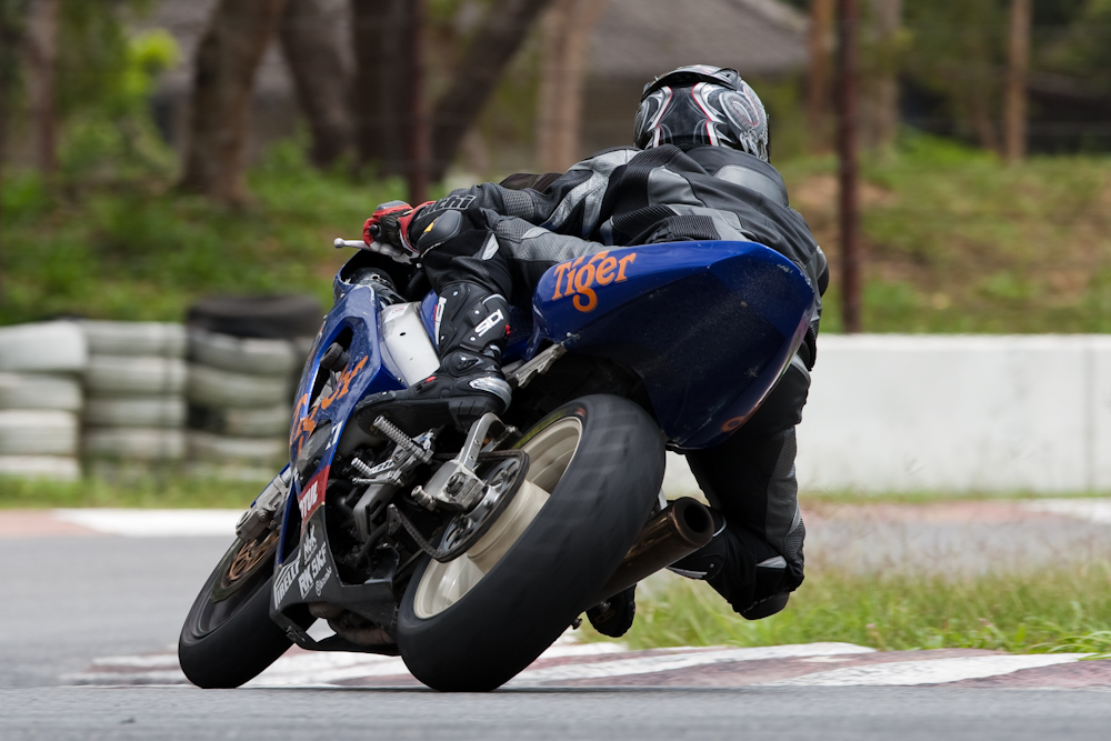 A session at Bira. The riders were relative beginners, so they were not providing extreme knee-scraping action. But after the restricted shooting opportunities of a Formula One circuit, it was good to stand in any suicidal position that took my fancy; such as the apex of a corner leaning out over the track.