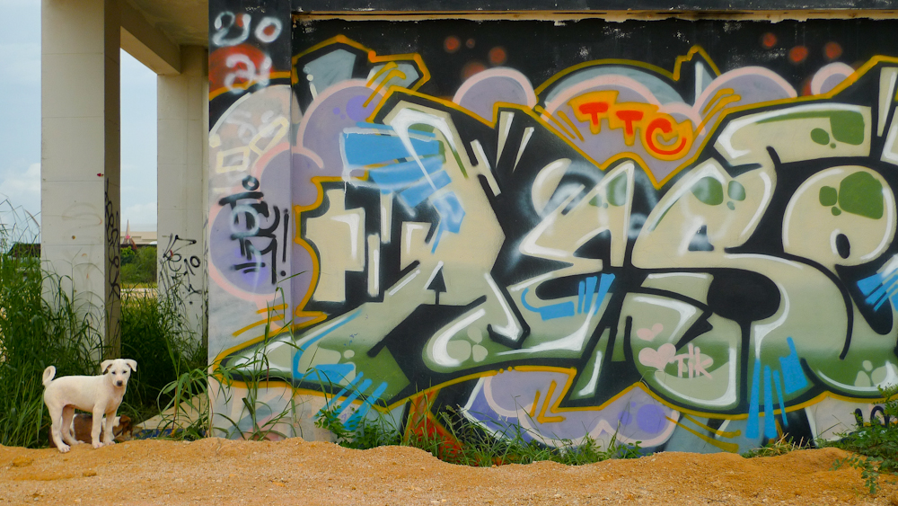 2009-10-21| genuinej saysHow can you tell it’s a guard dog? Why would anyone want to guard graffiti? When can we have another shot of Khun Honda?