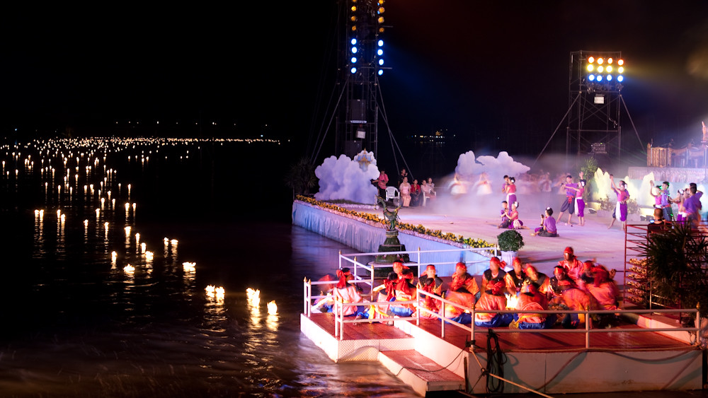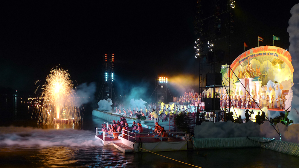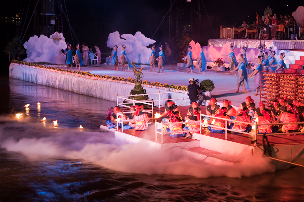 The show ended with a monster krathong spewing fireworks, released to coincide with the end of the music and dancing display.