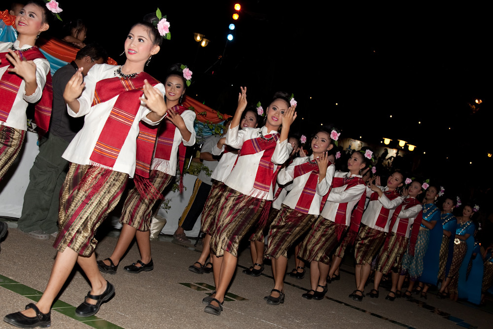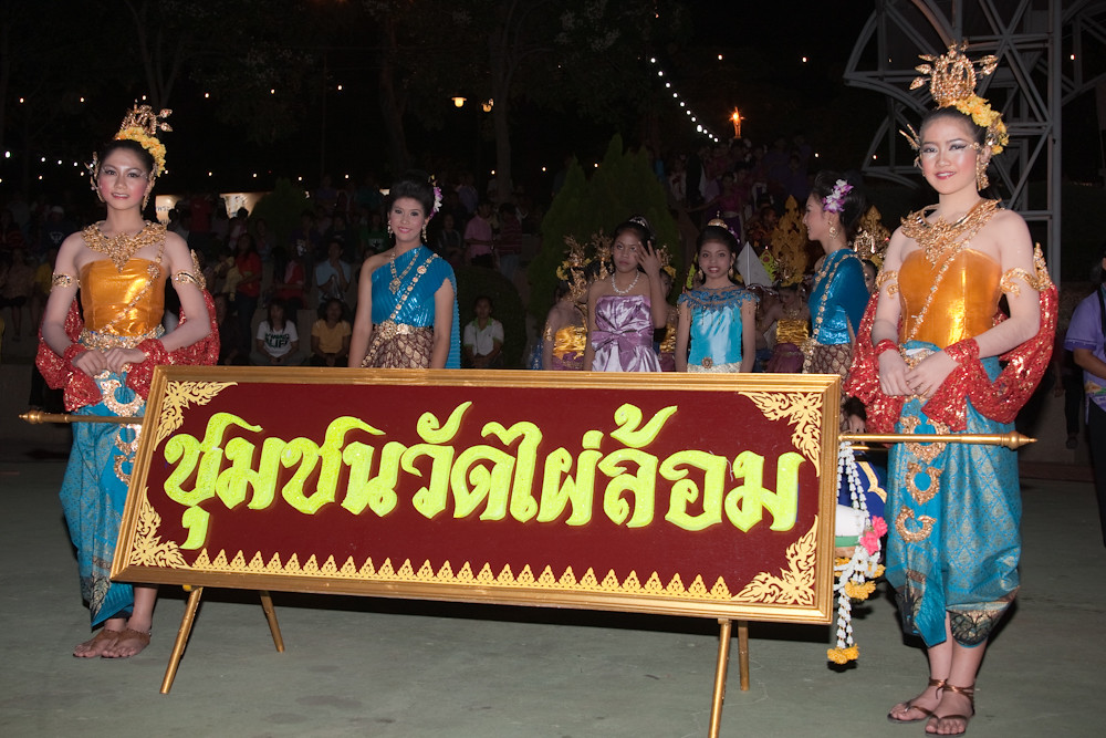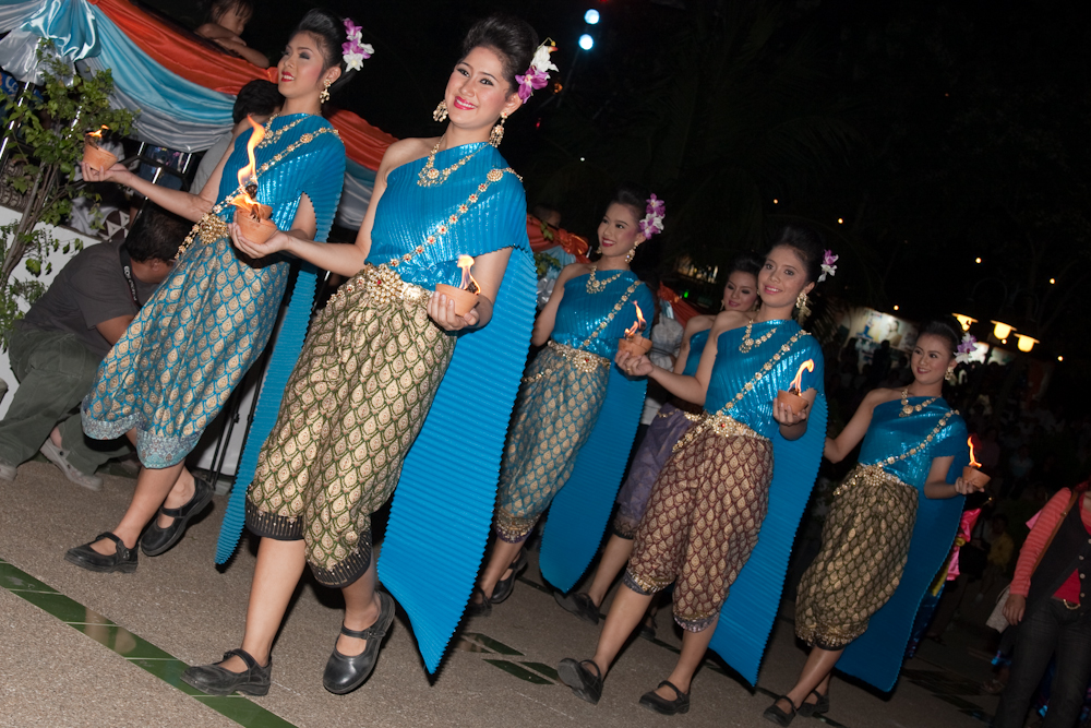First, the participants, dancers, musicians and krathong wranglers, marched to the stage.