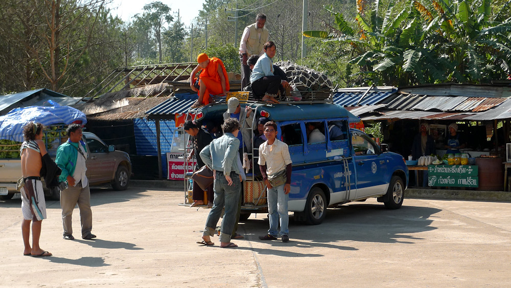 Of course, with three women in our group, the refreshment stop also turned into a snack and silly hat purchasing stop which went on for close to an hour. I looked for a “I survived the 1,219 corners of Death Highway with three women in the back of the vehicle” sticker in Umphang, but they appeared to be out of stock.
