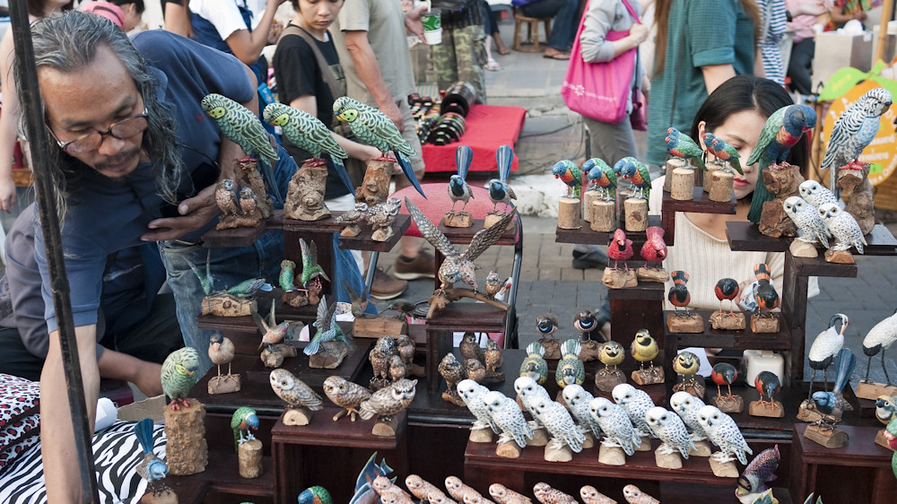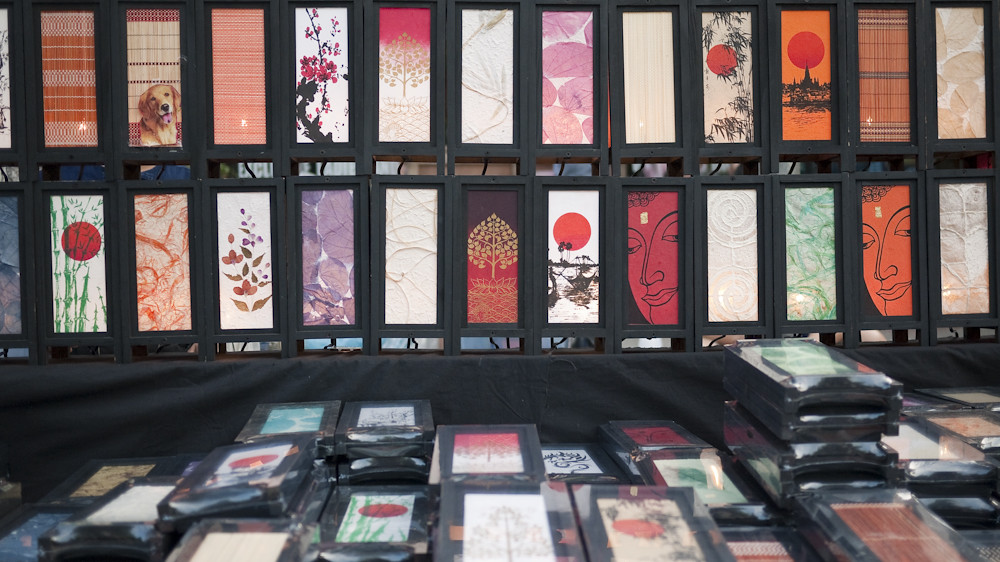 And then there is the Chiang Mai Sunday Night Market. Roads are closed and stalls set up along the footpath. As this was happening right outside our hotel, it was impossible to avoid; but in fact it was a pleasure to walk around (although after three hours I felt we had done enough). What you won’t find in Pattaya or Myanmar is much evidence of people actually making things with their hands and putting them on sale. For want of a better word I will call it “crafts”, and there are many crafts to be found in Chiang Mai.