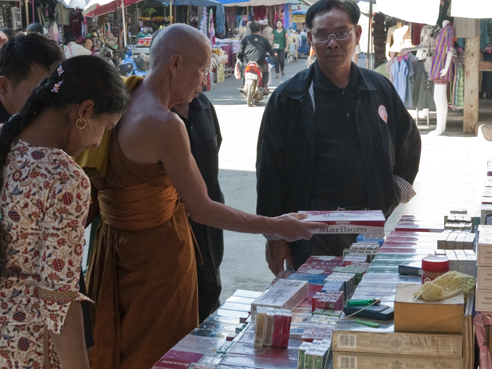 Never mind, judging by the rest of the market, the cigarettes and viagra will be fakes, and the porn disks will be a movie of someone called Debbie actually visiting Dallas and visiting her grandmother. With a border with China close by, the Myanmar market is a awash with copy goods. The iPhono (sic) looked quite realistic, until you tried to use it. I could have had a copy of almost any watch, apart from my Casio G-Shock which is too cheap to bother copying. And she who must be obeyed spent 250 baht (after some heavy bargaining), for four little handbags that were not made by Gucci but you could be fooled if you stood some distance away and closed at least one eye.