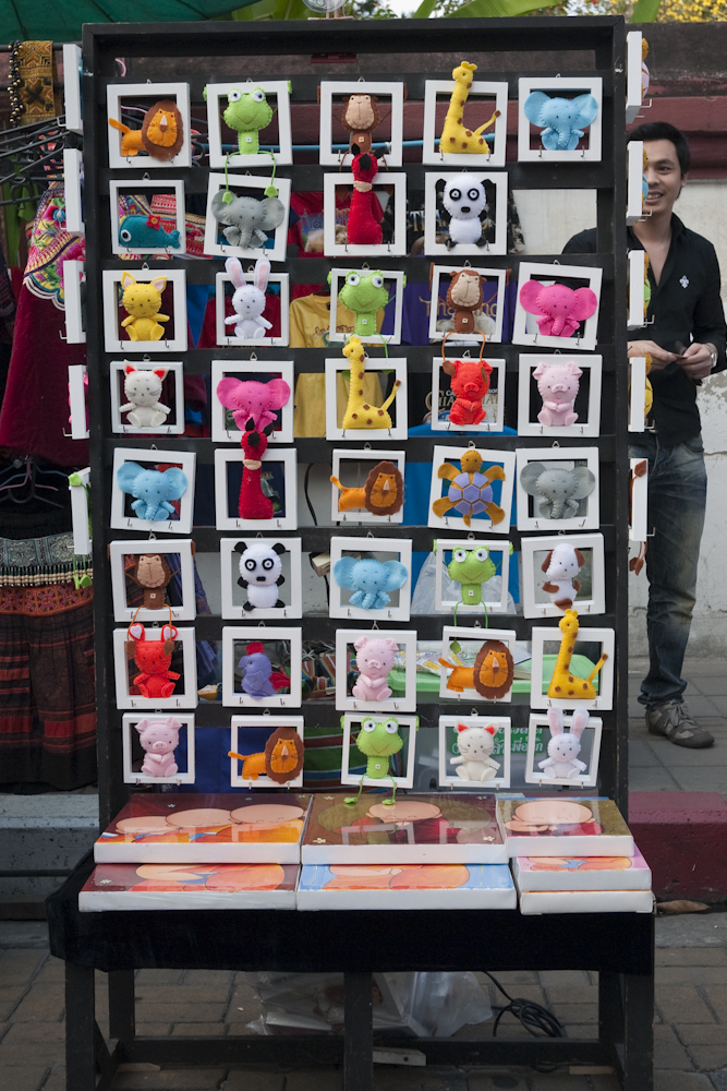 And then there is the Chiang Mai Sunday Night Market. Roads are closed and stalls set up along the footpath. As this was happening right outside our hotel, it was impossible to avoid; but in fact it was a pleasure to walk around (although after three hours I felt we had done enough). What you won’t find in Pattaya or Myanmar is much evidence of people actually making things with their hands and putting them on sale. For want of a better word I will call it “crafts”, and there are many crafts to be found in Chiang Mai.