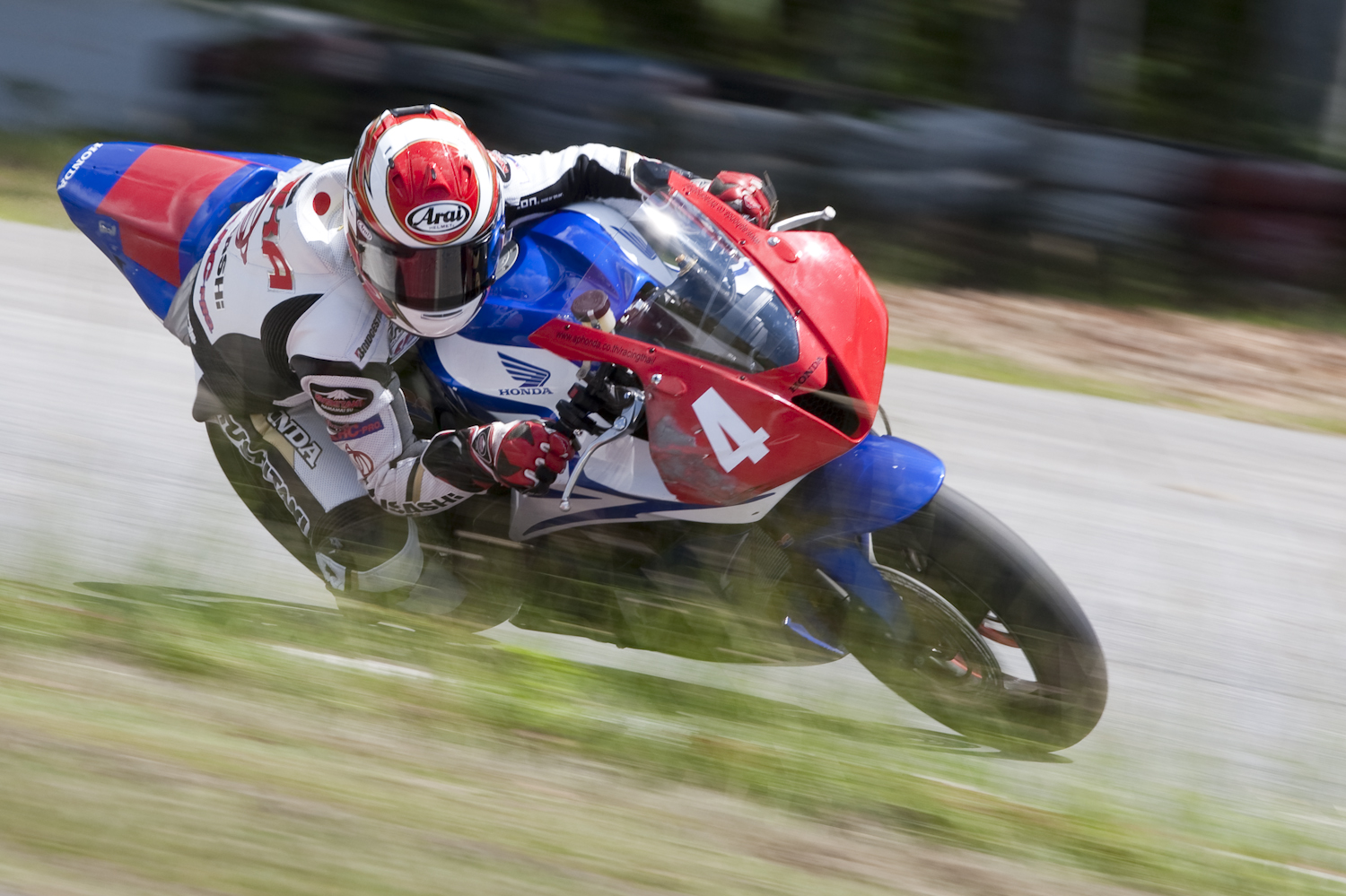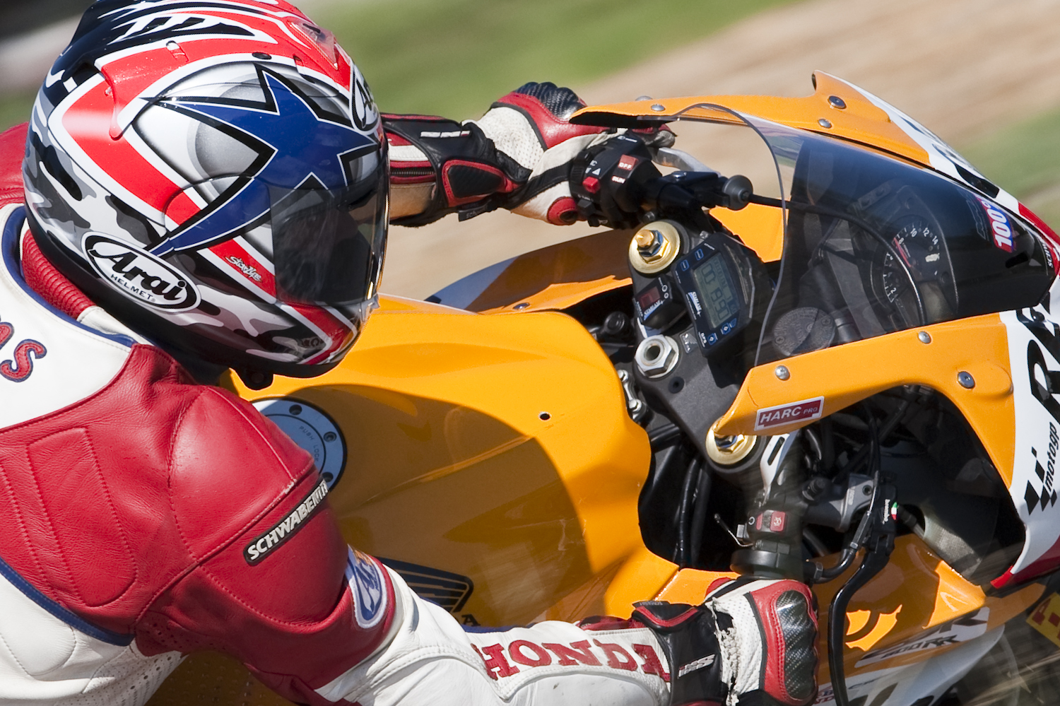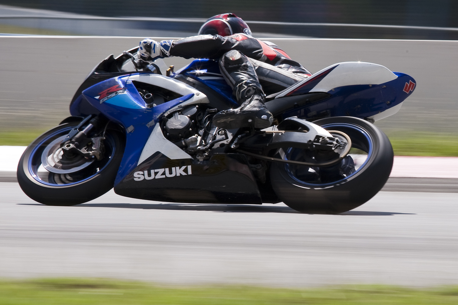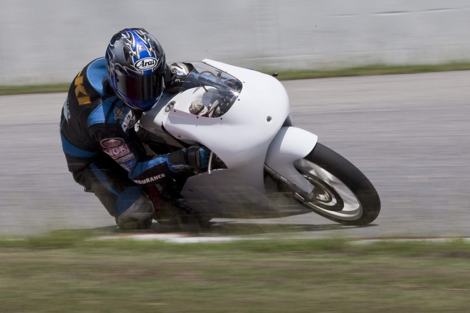 Bikes present a different problem. Apart from some general vibration in all directions, they tend to confine themselves to a horizontal direction. So shooting at 1/400th with a 300mm lens produces a sharp image, like this (although you still need to pan the shot accurately to get a sharp result):
