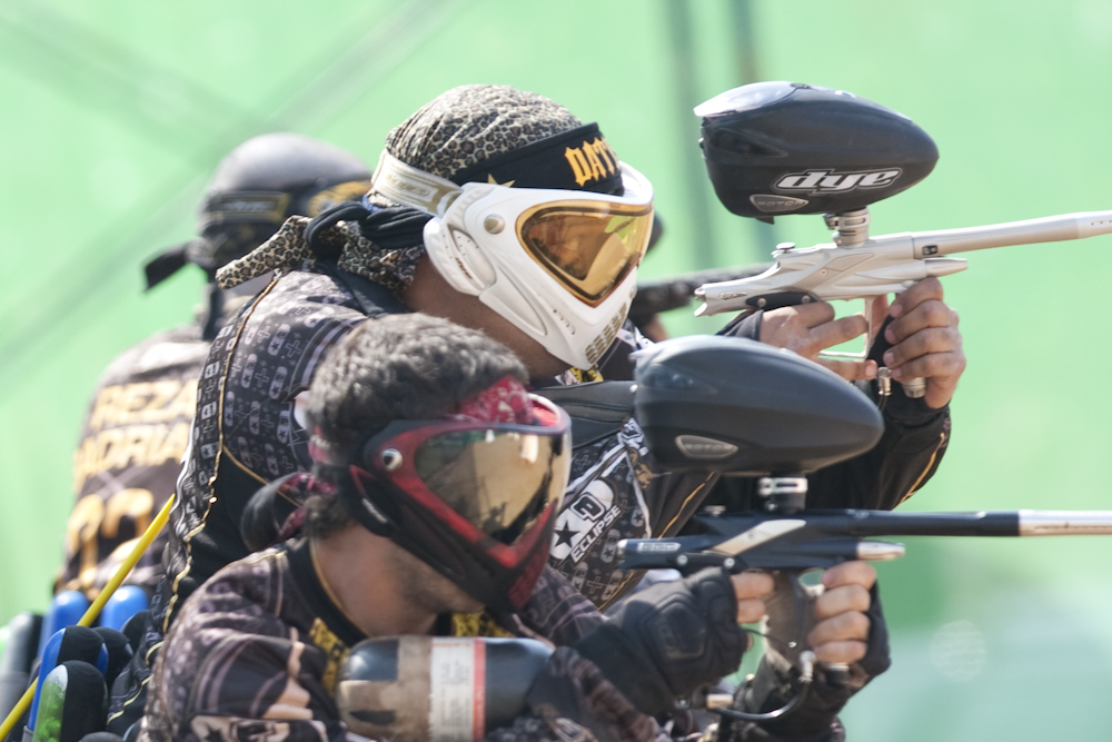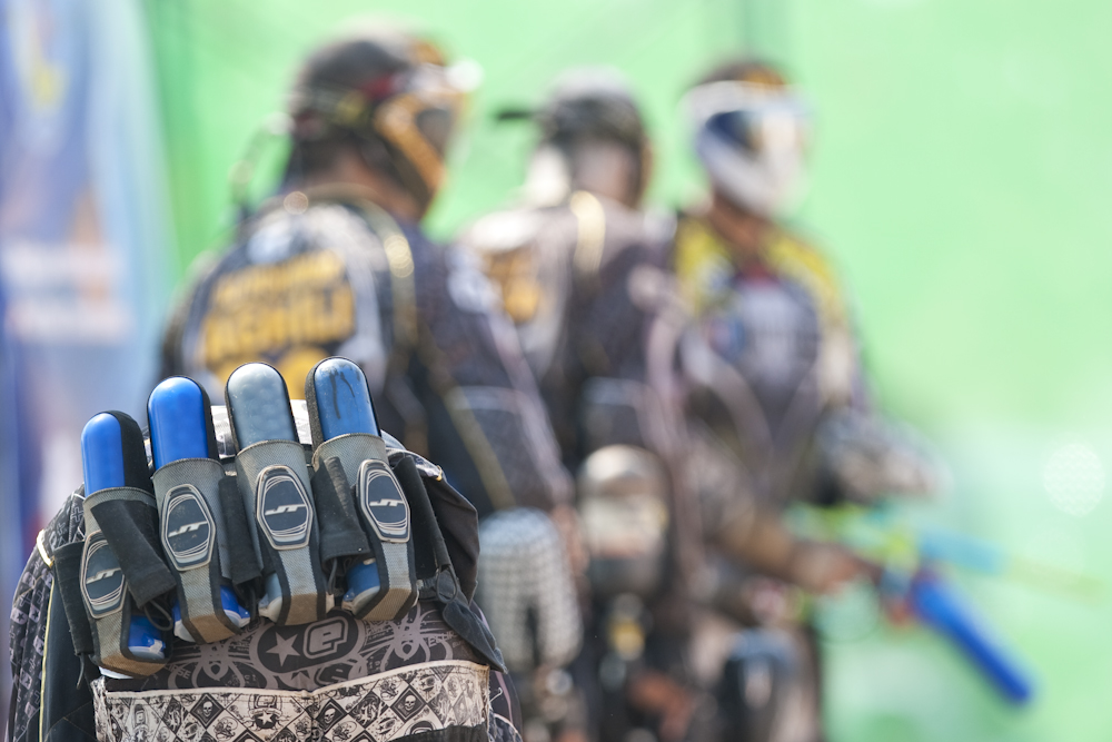 Teams from around the world competing for something (a token can of paint perhaps), in one of the world’s weirder pastimes. Two teams at opposite ends of an enclosure, last man not covered in paint wins, or something like that. They certainly shoot a lot of paint balls: