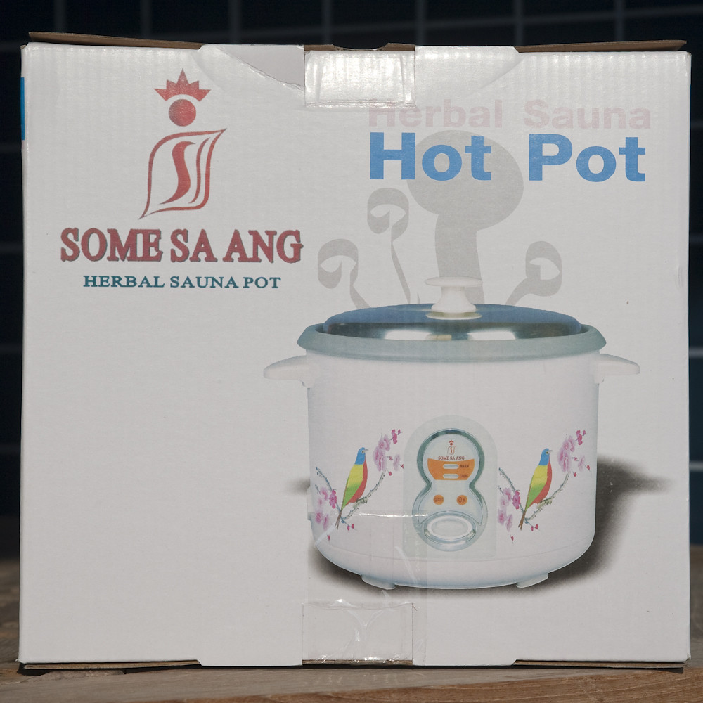 So you fill the rice cooker with water and some stuff that makes a smell something similar to, but not exactly the same as, herbs; stick it in the tent and then climb in for a steaming session (and a scalded legs session should you accidentally kick the rice cooker and spill some). Then you climb out and have a cold shower, and assuming you have not collapsed with heart failure, you do it all over again.