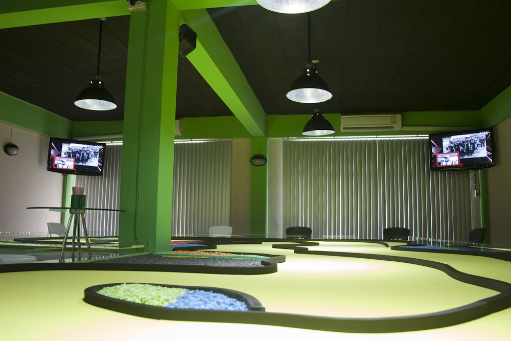 On the top floor of the club there is a second track and three TVs….