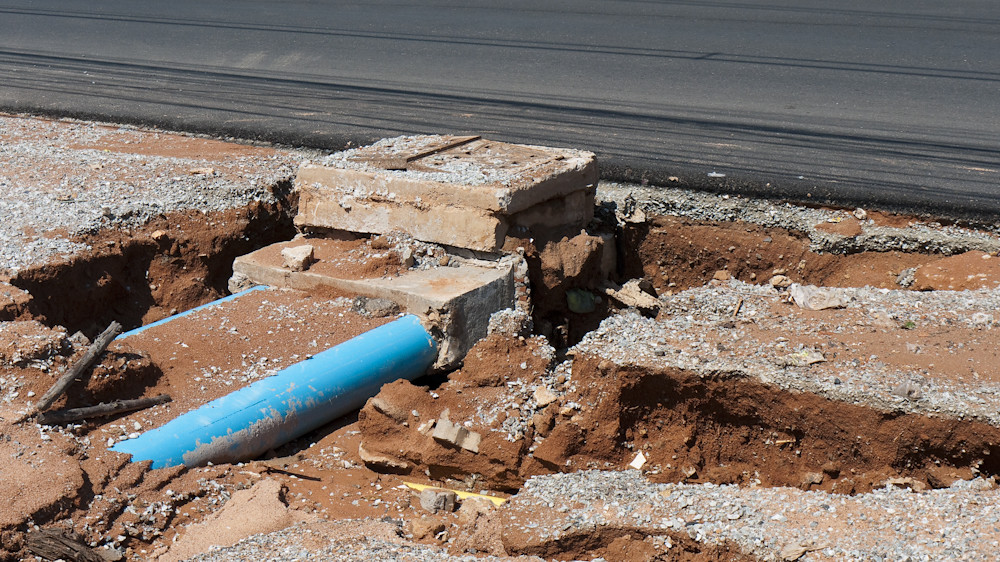 The extended four year construction period was mainly due to ineptitude, but it did include many months of digging, followed by the installation of a new drainage system, presumably to ensure that rainfall would travel through a proper drainage system and not flood the road, or undermine it.