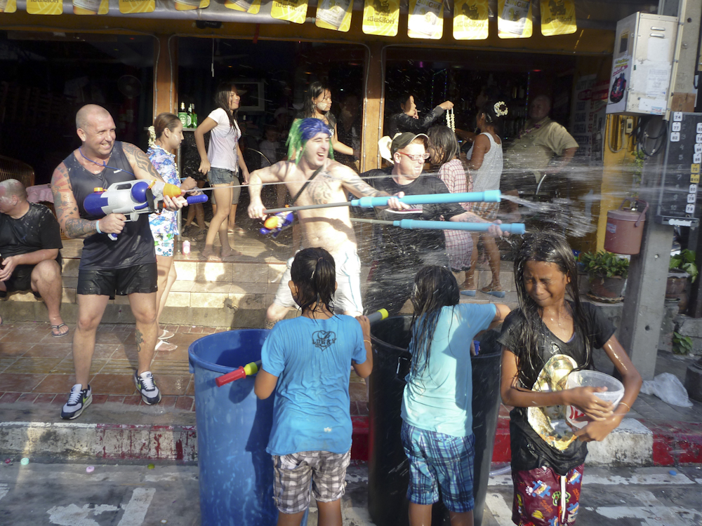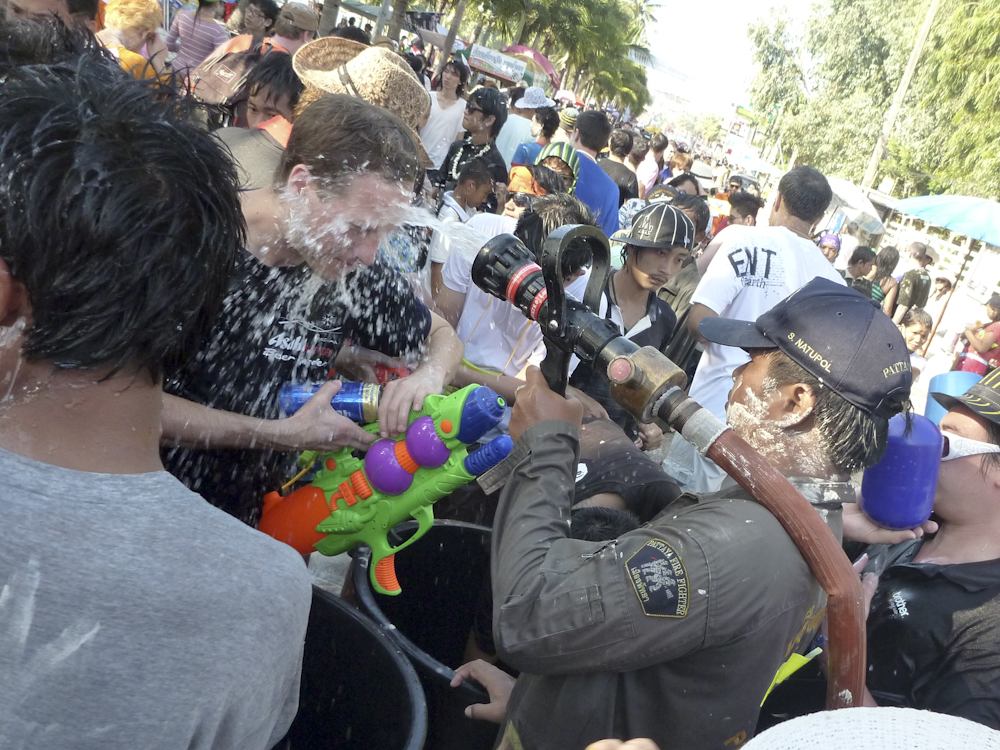 I tried last year putting the camera in a clear food bag, it worked just about OK, but now have a new EOS and did not even risk getting it out.. so no Songkran photos this year.