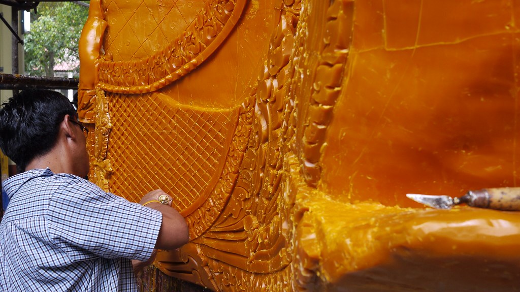 Built on a plaster and coconut strand base, this is all candle wax, with a single candle in the middle which will presumably be lit at some point. The amount of effort required to build such a monster is staggering, and when we went round a few temples yesterday, they were still hard at work preparing their entries.