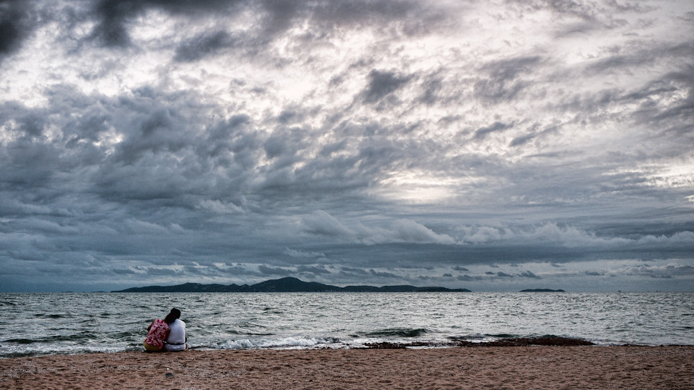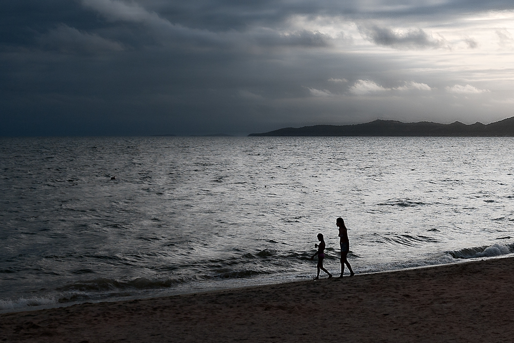 It looked like it was going to be a dramatic sunset; so we went on the beach for some sunset shots of mothers; but although there were mothers, there was no dramatic sunset. Still, throw a couple of shots at Topaz Adjust and some drama can be added.
