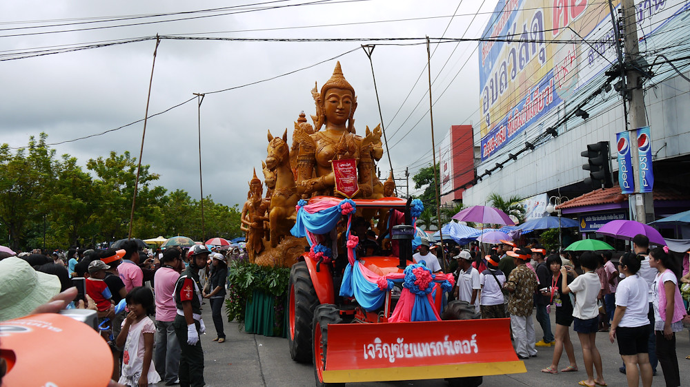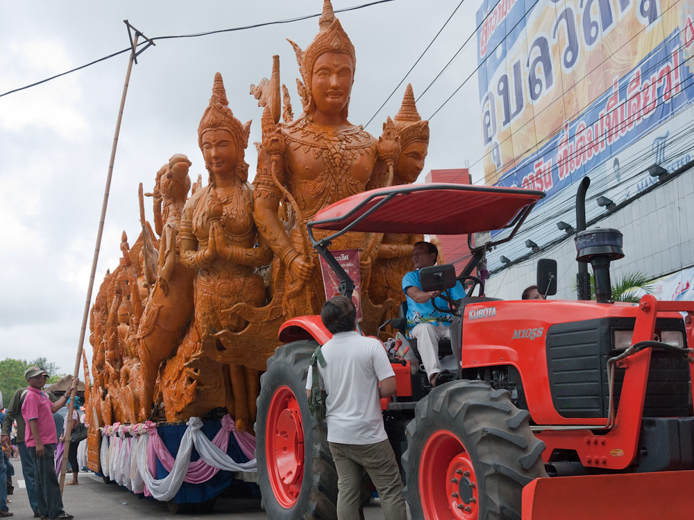 The wires are a necessary evil of life, but they do interfere if you want to parade large candles. The solution is men with long sticks.