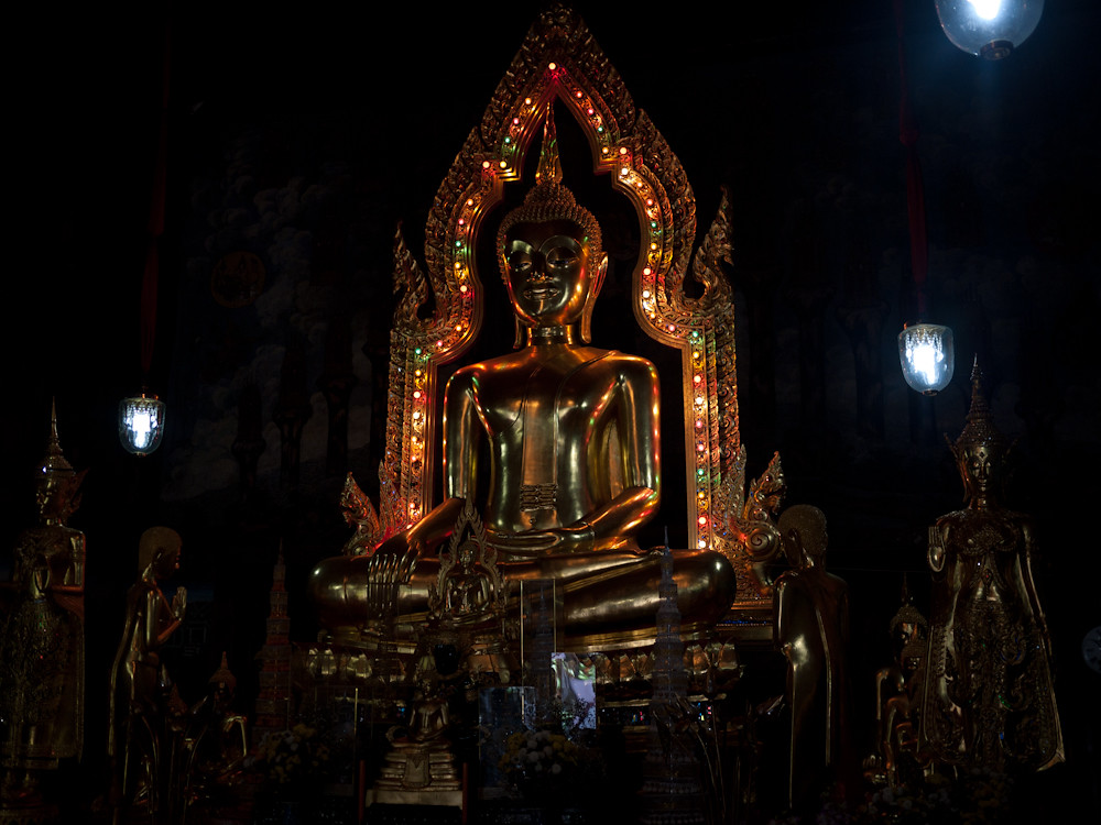Then theoretically we were off to Chinatown to shoot a few Chinese temples and life on the street. Our taxi driver has less idea than we have as to where to go and ends up by dumping us at a Thai temple somewhere that is almost but not quite in Chinatown. To make things worse, the temple is closed; until Nik launches into his best Thai and persuades a monk to open it for us. The inside is more like a disco than a temple: