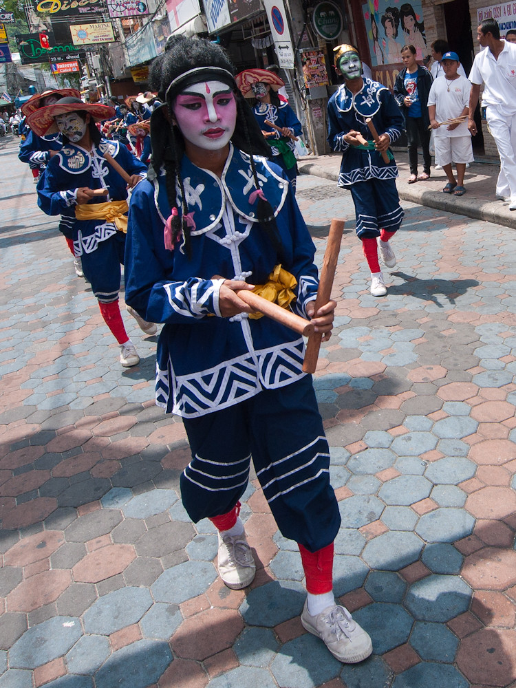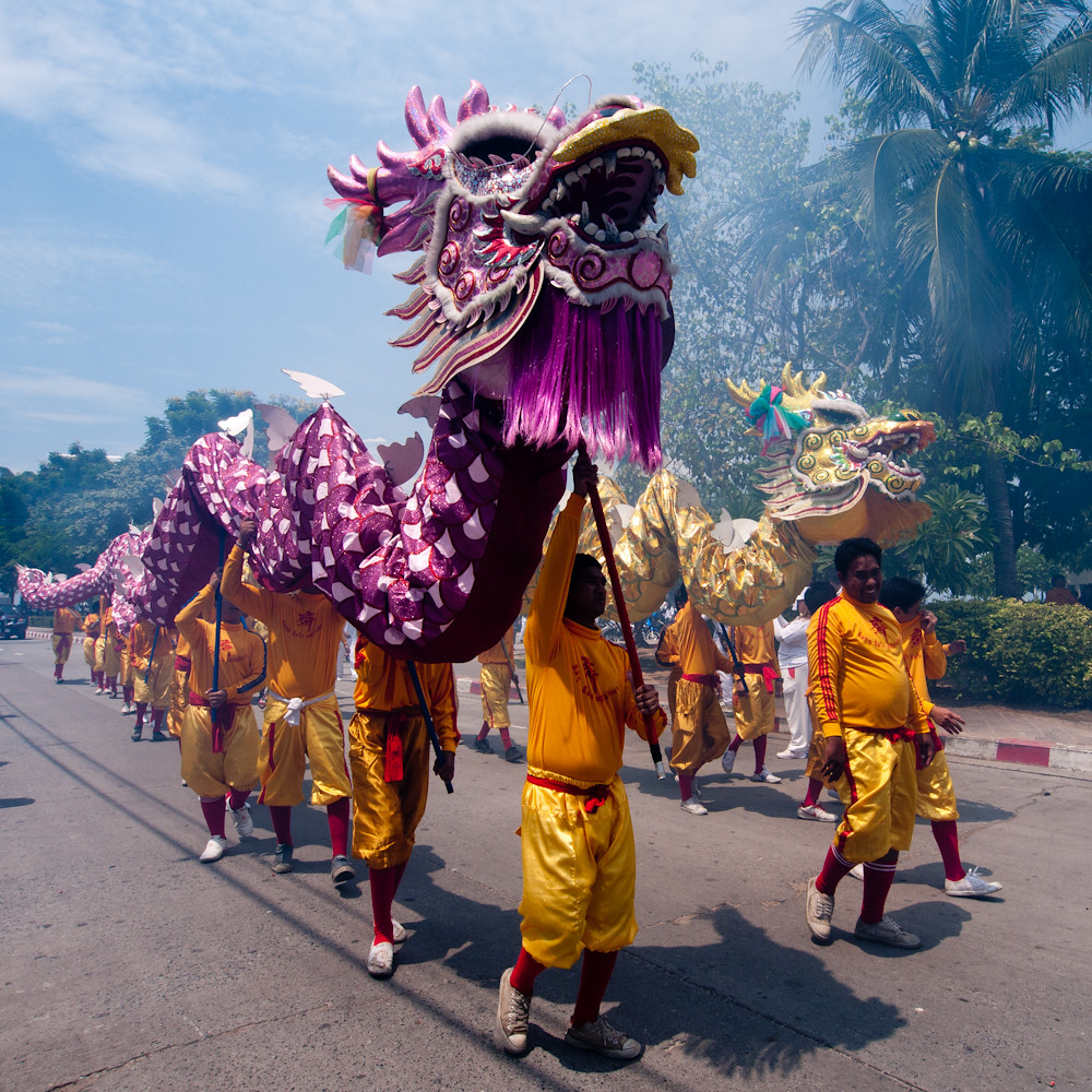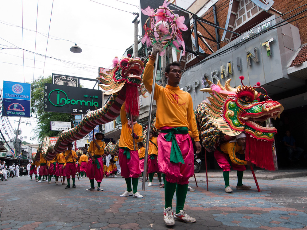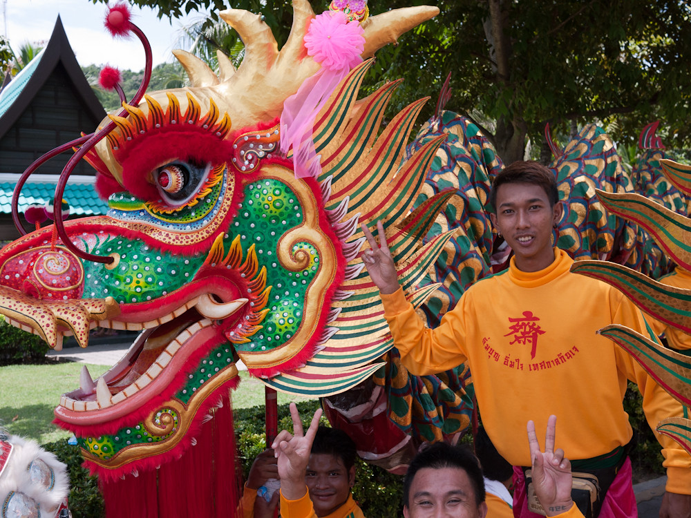 It’s the same every year. A bunch of dragons and assorted dancers set off from Bali Hai pier and march across town until they get tired. Then they are picked up and taken to Naklua, which will host vegetarian food stalls for the next ten days. She who must be obeyed advises me that we will only eat vegetarian food for the duration of the festival; I remain dubious.