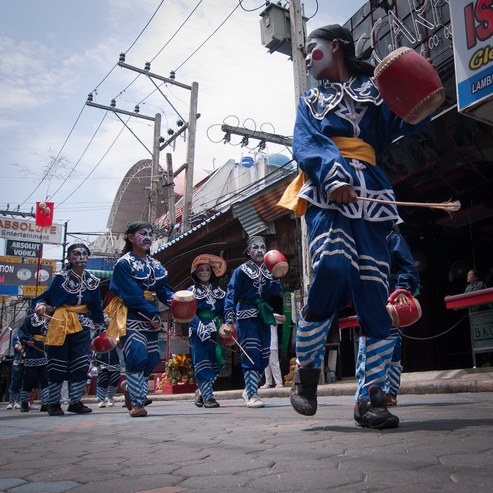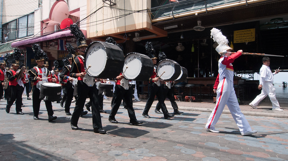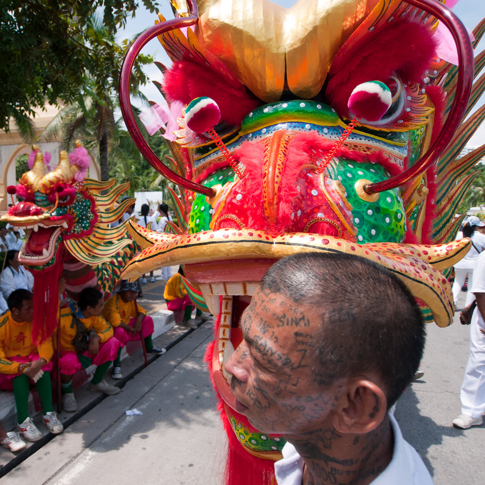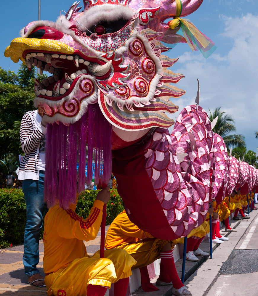 It’s the same every year. A bunch of dragons and assorted dancers set off from Bali Hai pier and march across town until they get tired. Then they are picked up and taken to Naklua, which will host vegetarian food stalls for the next ten days. She who must be obeyed advises me that we will only eat vegetarian food for the duration of the festival; I remain dubious.
