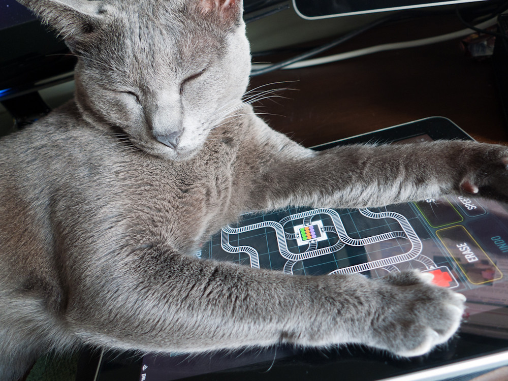 2010-10-27| Spike saysMy cat has also beaten your best time at NanoTrax, and has three stars on all levels of Angry Birds.