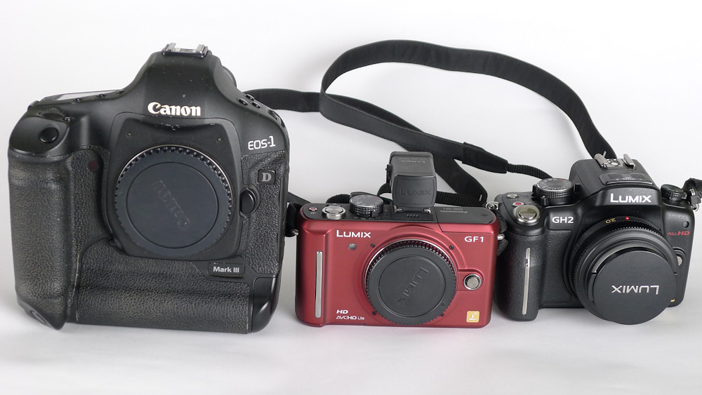 Still, while it may share the looks of a DSLR, it maintains the M4/3 ethic by not sharing the size. The GH2 is tiny compared to my 1D, and not much bigger than the GF1.