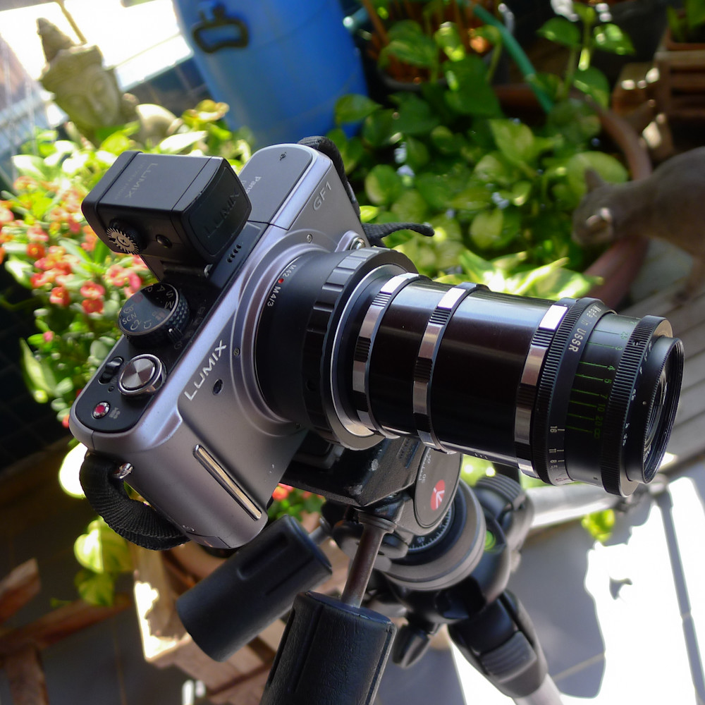 Initial results are not promising, which is why I am not posting any here (but now see update below). There is a light fog drifting across the images, maybe related to the fact that my copy of the lens sports what appear to be air bubbles in the glass, probably not a design feature. Two fellow idiots have ordered the same set-up, so will wait to see their results. Maybe I need to lash out another $17 on another Industar-50, or maybe I need to just junk the whole contraption and forget about it. I remain cautiously pessimistic.