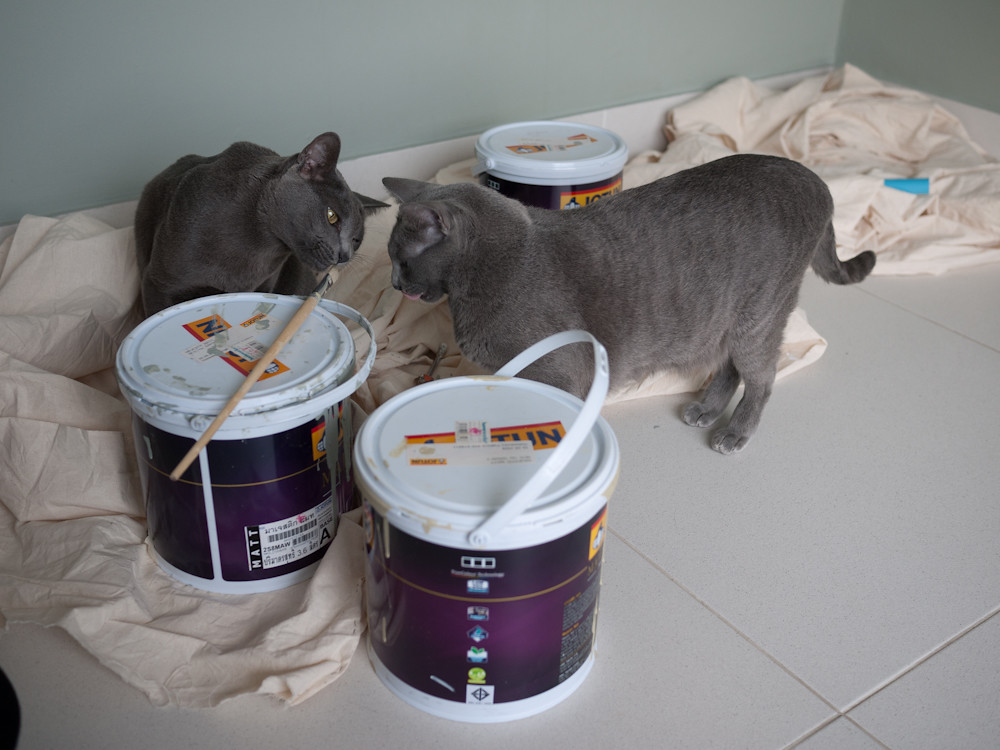 My approach to painting a wall is to carefully go round the edges with a brush, just overlapping onto the masking tape; and then use a roller for the rest. I climb a ladder for the high bits and sit on the ground for the low bits. None of that nonsense for my wife. She appeared with an old broom, and stuffed the broom handle end into the roller to produce a long and dangerous instrument of destruction. Using her extended device she could layer on paint from floor to ceiling (and on the floor and the ceiling). What she gained in reach, she lost in precision; and her shock and awe approach to decorating left a lasting impression on places that were not expecting paint, including one of the cats. To her credit, she did then spend a couple of hours with various liquids removing the stray paint, although the cat remains slightly spattered.