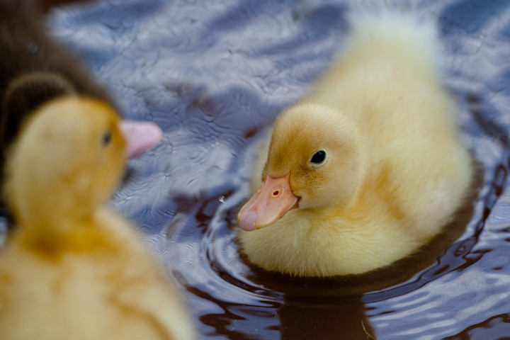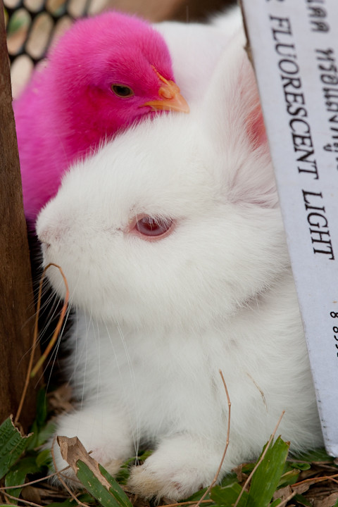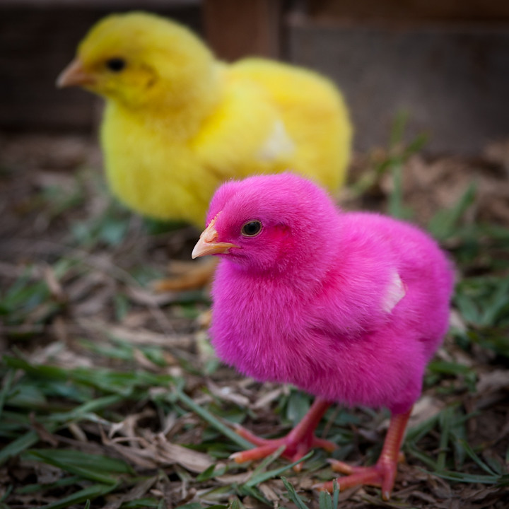 Not sure how they coloured the chicks; but it did allow the identification of the yellow chick as being zoo leader. The chicks liked to sleep with the rabbit. The ducks chased the rabbit. The yellow chick took revenge by making the life of the ducks a living hell. Would make a good movie, with Robert Downey junior as the evil duck.